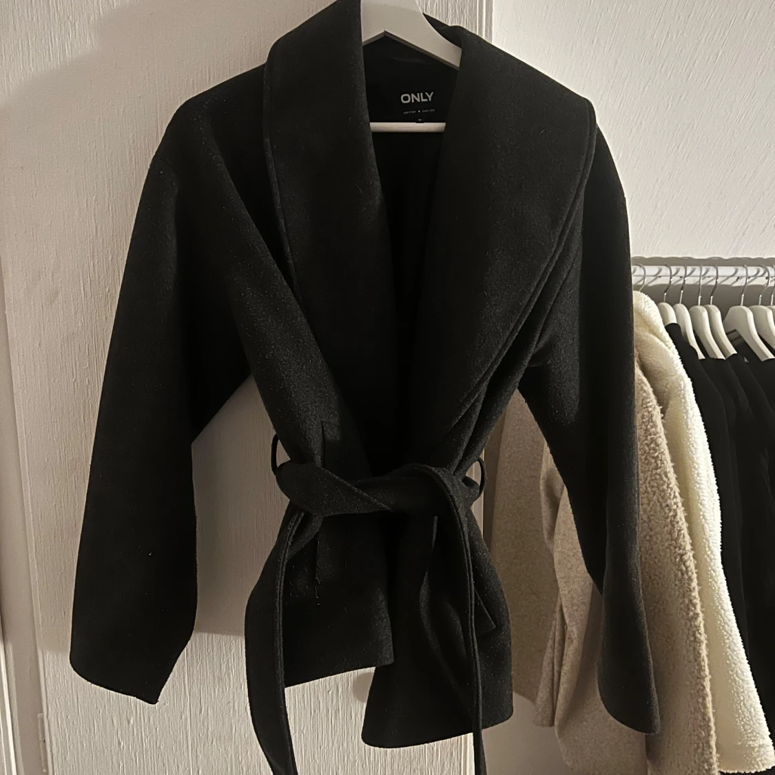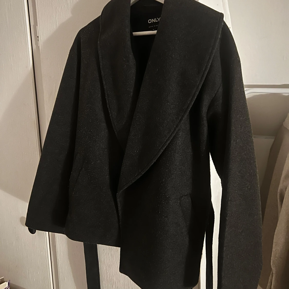 Snygg svart kappa från ONLY med knytbälte i midjan💞💞