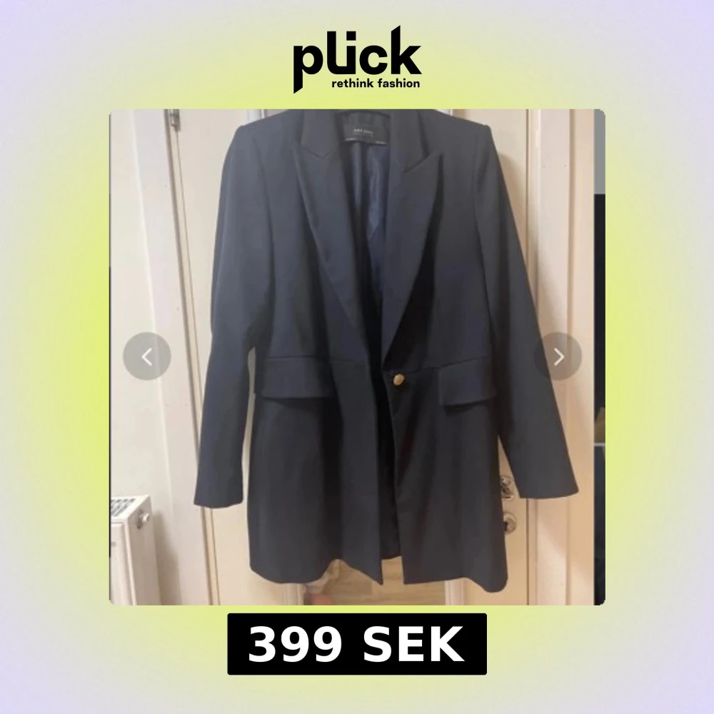 Stilren svart kavaj från Zara Basic med snygga guldknappar på ärmslut och framtill. Kavajen har klassisk krage, långa ärmar och två fickor med lock. Perfekt för dig som vill ha en tidlös och elegant look.