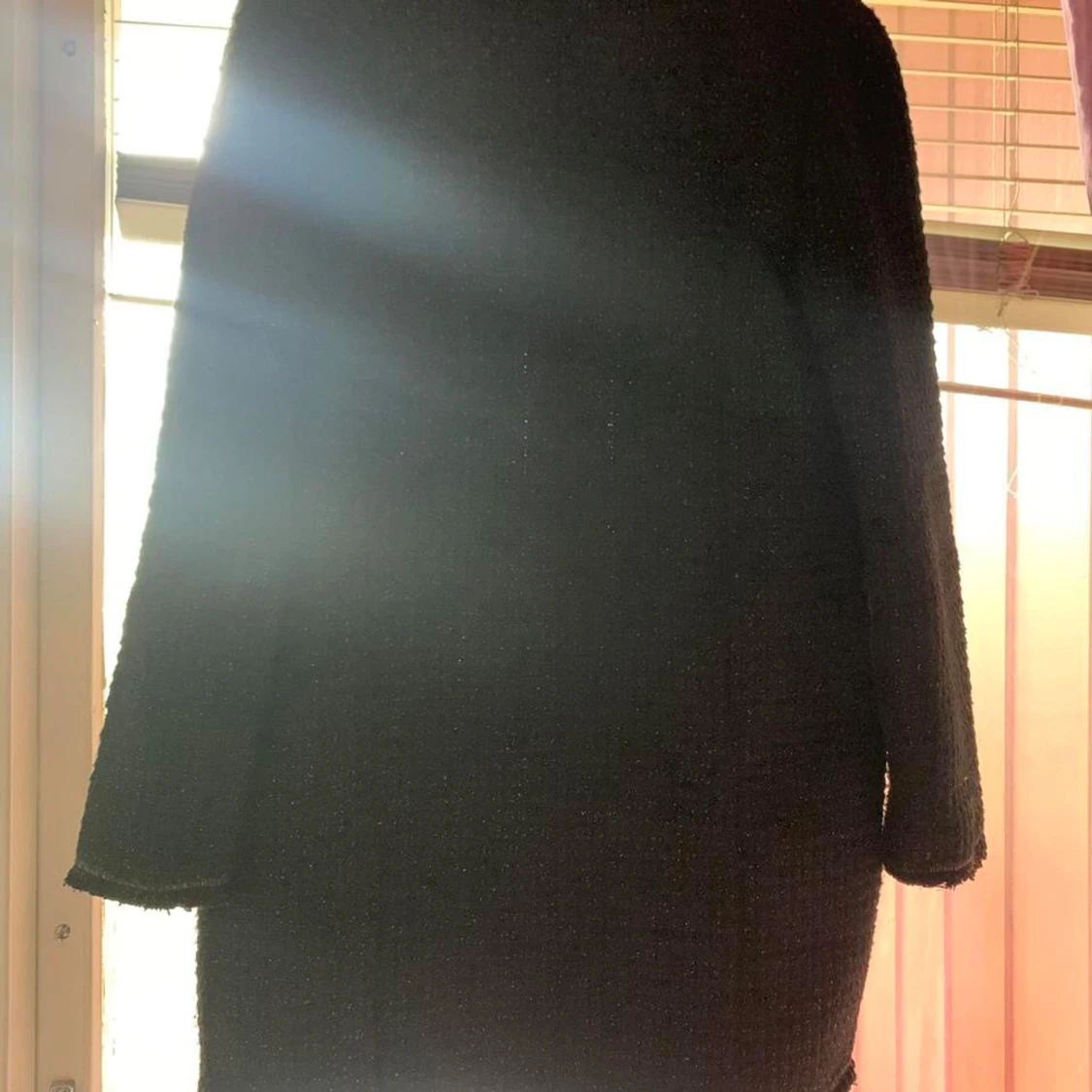 Elegant svart kappa med långa ärmar och stiliga kedjedetaljer vid fickorna. Perfekt för en chic look. Den har en klassisk design som passar till många tillfällen.