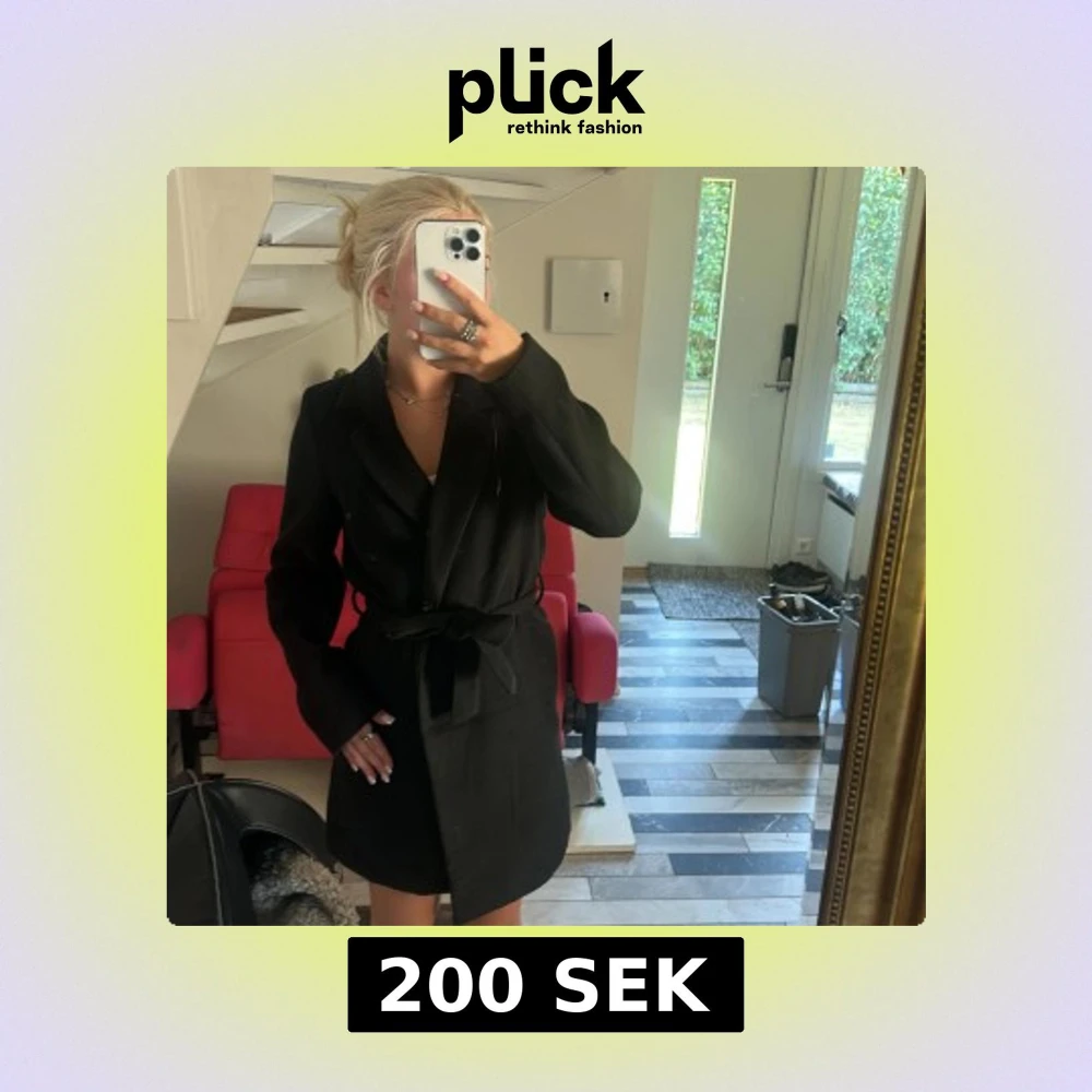 Snygg svart kappa med bälte i midjan. Kappan är från hm och är i storlek s. Perfekt för sena sommarkvällar eller till hösten. Skriv vid frågor eller funderingar💓