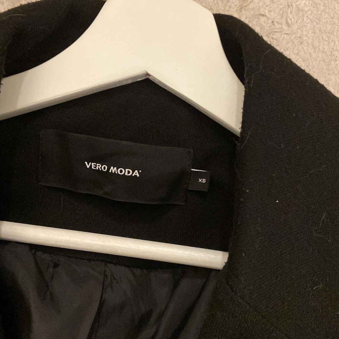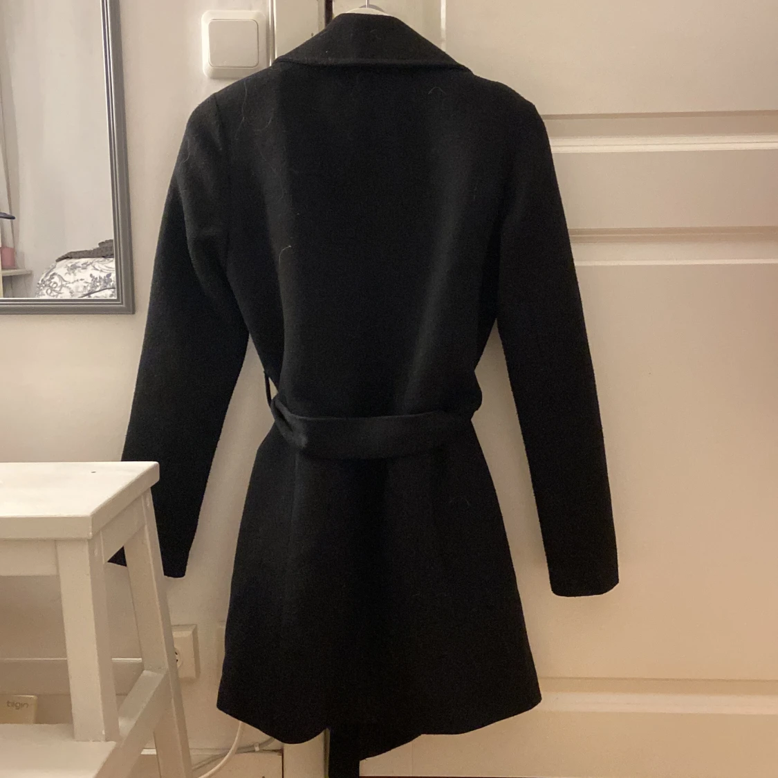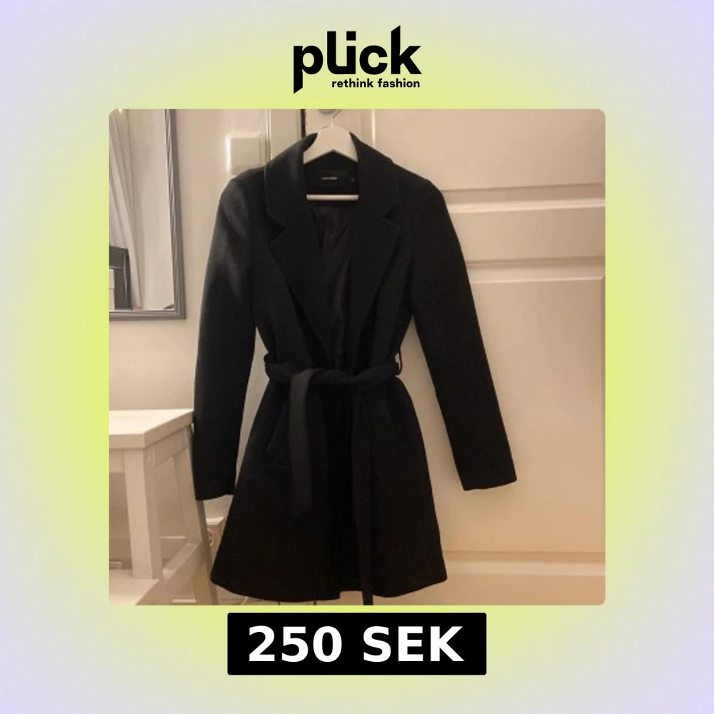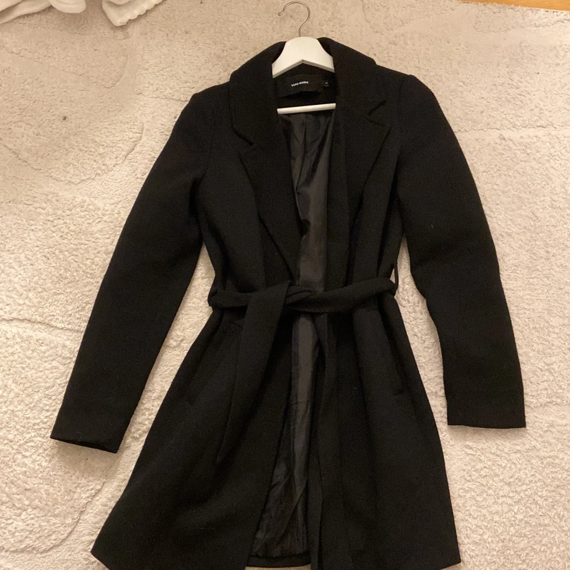Stilren svart kappa från Vero Moda i storlek XS. Jackan har klassisk krage, knytskärp i midjan och är helfodrad. Perfekt för dig som gillar en enkel och snygg look med markerad midja. Materialet är mjukt utanpå och innanför. Dock så är materialet på utsidan lite nopprigt. Pris kan diskuteras