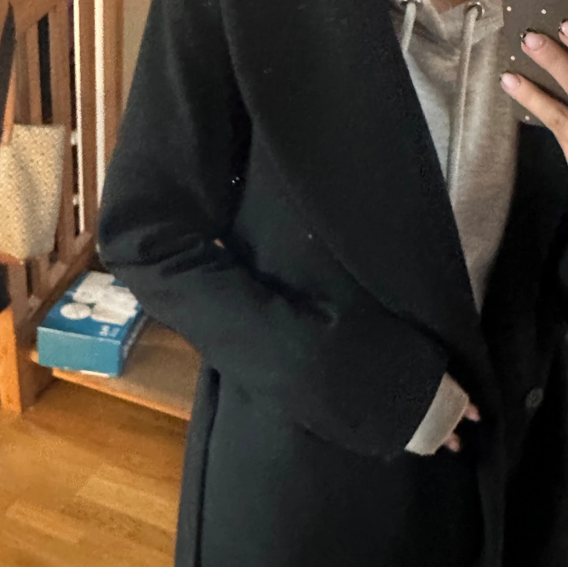 Säljer en svart kappa med bälte i midjan och klassisk krage. Jackan är långärmad och har en stilren, enkel design som funkar till många olika outfits. Materialet känns mjukt och värmande, perfekt för kyligare dagar. Jag är ca 163 o den går till knäna på mig. Varm o skön.