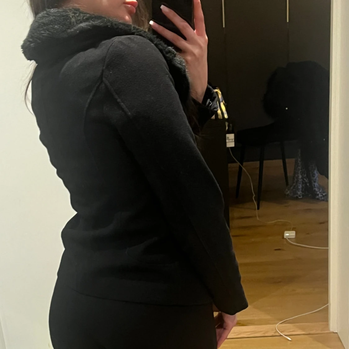 Svart kappa med fejkpäls