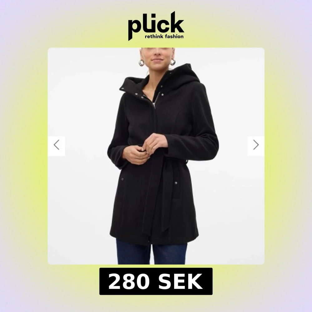 Stilren svart kappa med stor huva och knytskärp i midjan. (Varm klarade mig både hösten och vintern med den) (finns fle bilder)