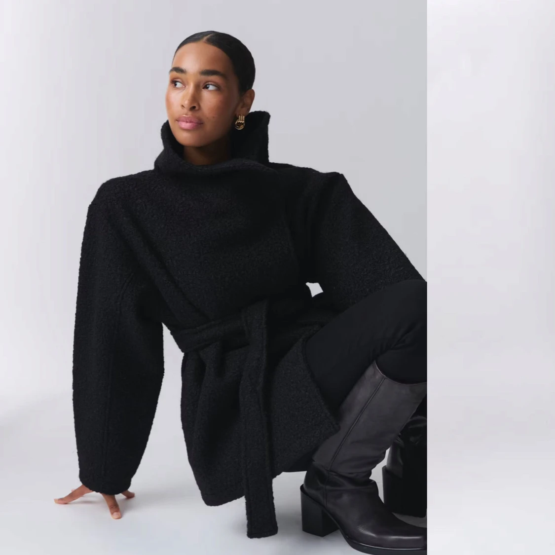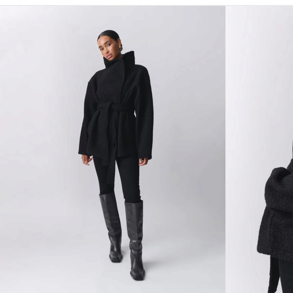 Snygg svart kappa med knytband i midjan. Perfekt för höst och vinter. Den har en hög krage och långa ärmar. Den är ifrån Gina tricot och ät k storlek S vilket är slutsåld på hemsidan. Använd ett få tal gånger och har inga slitningar