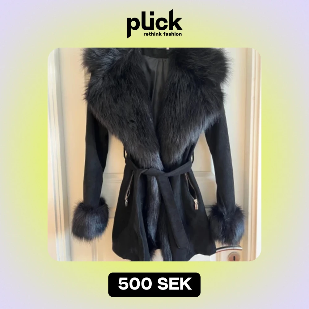 Svart kappa med pälsdetaljer, endast använd 1 gång. Passar XS/S