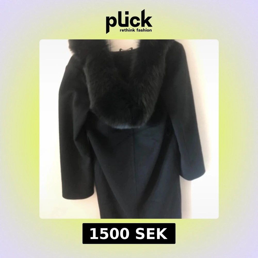 Stilren svart kappa från Hollies med bred, fluffig pälskrage. Klassisk rak modell med långa ärmar och diskreta fickor i sidorna. Perfekt för dig som vill ha en elegant och tidlös look under kyliga dagar. Storlek 32