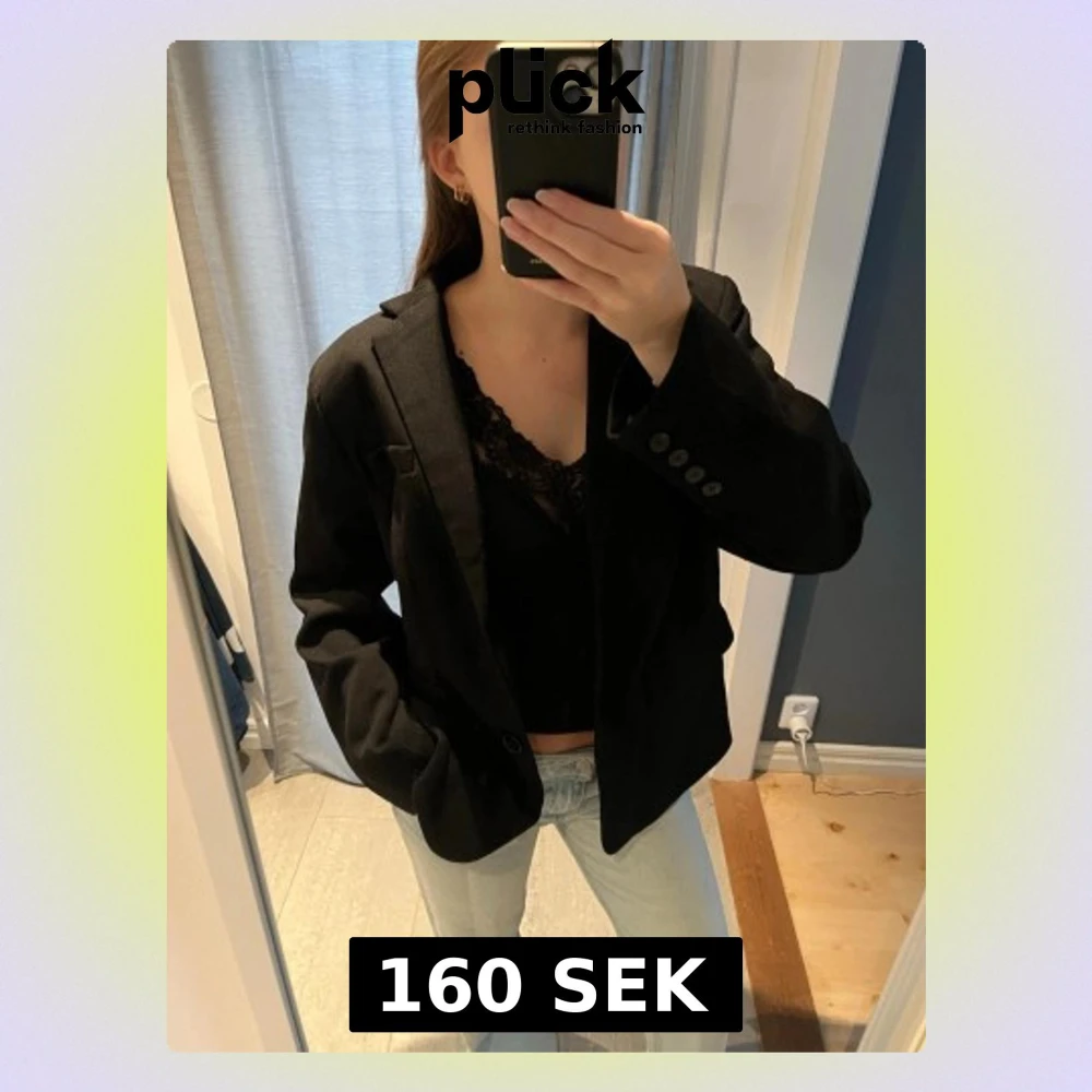 Svart kavaj med klassisk krage och tre knappar framtill. Snyggt skräddad med långärmade ärmar och lätt oversized look