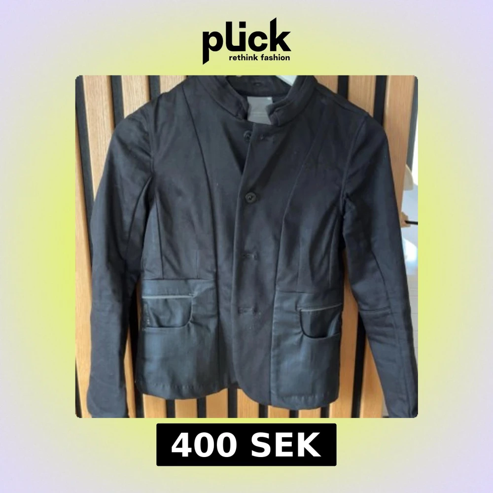 Stilren svart kavaj med ståkrage och knäppning framtill.