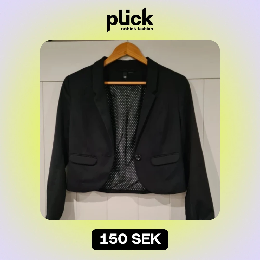 Snygg svart kavaj från H&M i storlek 36. Knapp framtill och prickigt foder.