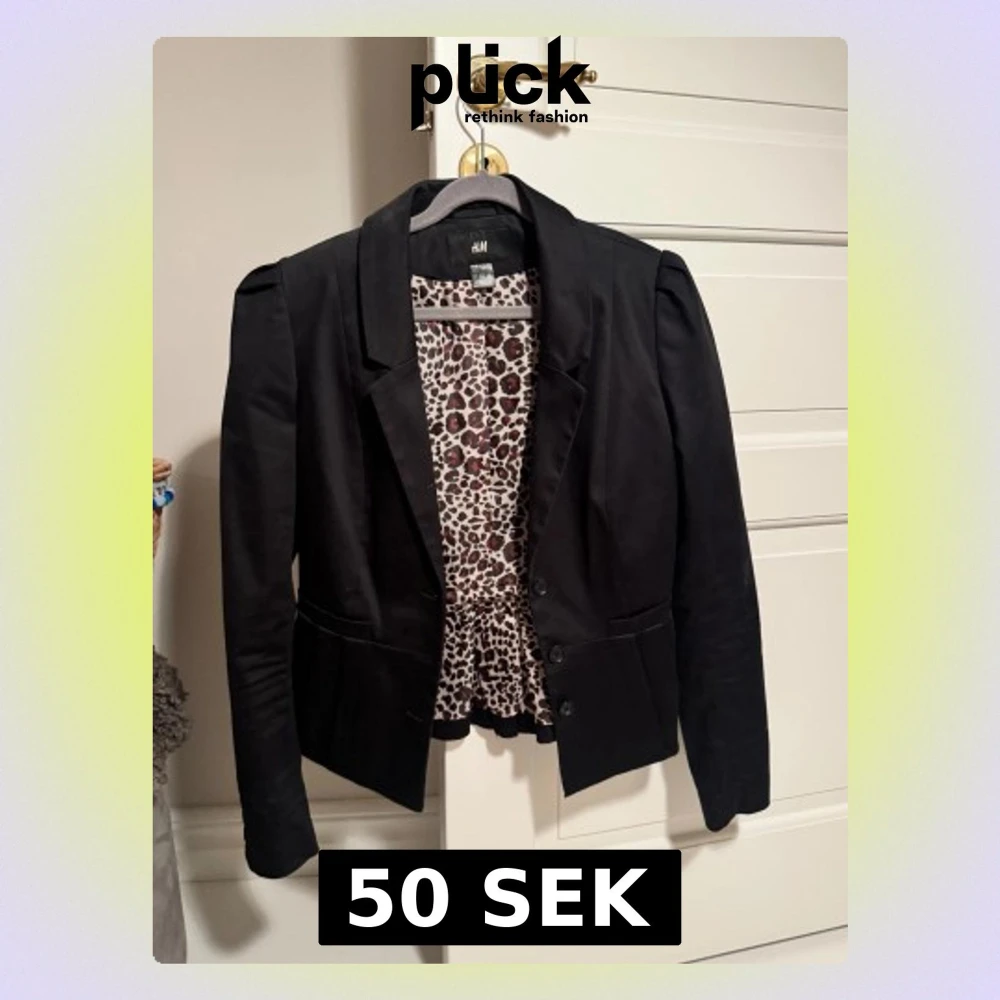 Svart kavaj från H&M i klassisk modell med snyggt fall och markerade axlar. Fodret har leopardmönster som ger en cool kontrast. Kavajen har knappar framtill och fickdetaljer. 🐆