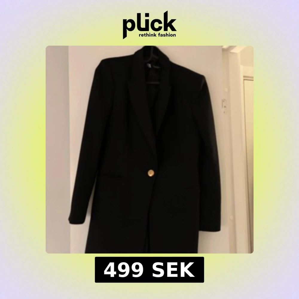Elegant svart kavaj med en stilren design och en iögonfallande guldknapp framtill. Kavajen har långa ärmar och en klassisk krage, perfekt för en sofistikerad look.