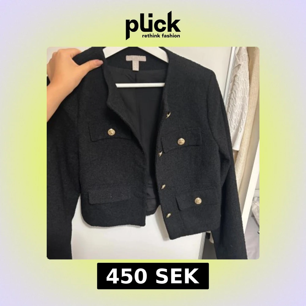 Snygg svart kavaj från H&M, helt ny i kvalité använt ungefär 2 gånger 💕💕(❗️ Det saknas ingen knapp , jag har bara missat att knäppa på ett ställe)❗️