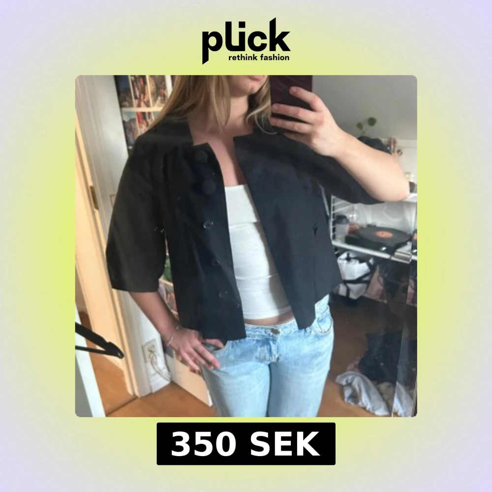 Snygg svart kavaj med trekvartsärm och knappar framtill. Perfekt till våren/sommaren!