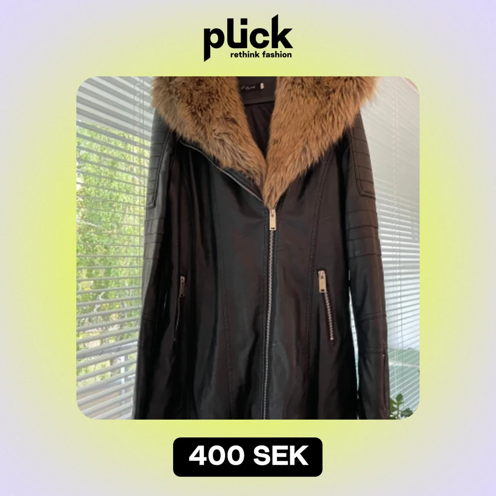 Fin svart läder jacka som är köprniffån lyckliga jag inte använt ut den kanske bara 4.5 gånger skön material håller varm man kan ta av pälsen på den om man vill ord pris 1000 ifrån butik