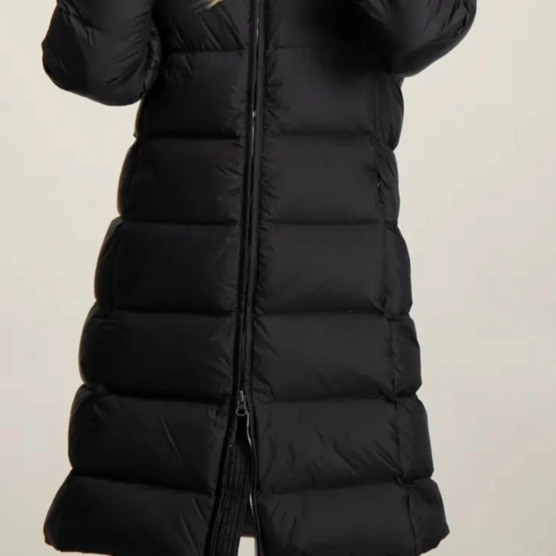 Lång svart dunjacka från Colmar med huva och dragkedja hela vägen. Storlek 14 years, 166cm. Jag brukar ha xs och är 163 cm. Den är svart med grått innertyg. Finns missfärgning från tvätt inuti jackan på innertyget men inga defekter på utsidan eller hål .