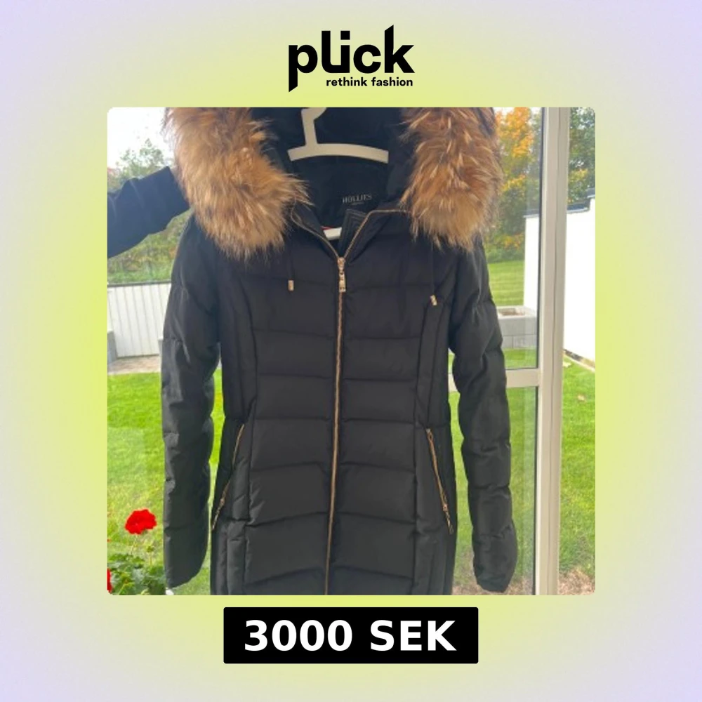 Snygg svart lång dunjacka från Hollies med stor fluffig pälskrage i bruna toner. Jackan har guldiga dragkedjor, quiltad design och figurnära passform. Perfekt för kalla dagar med sin varma och stilrena look. Köpt för 5000 kr, använd endast en vinter!