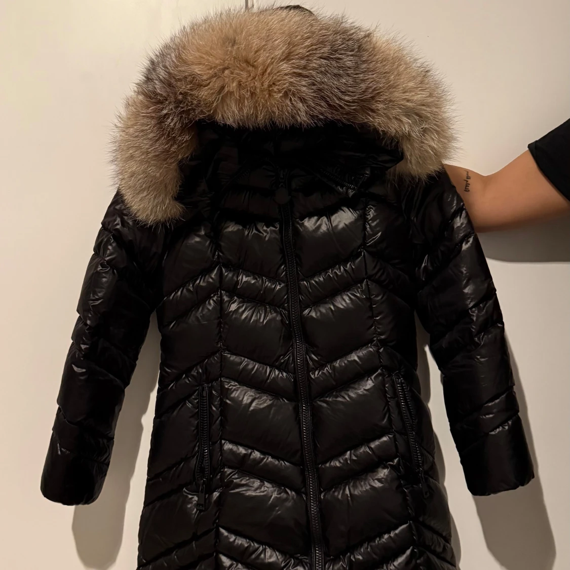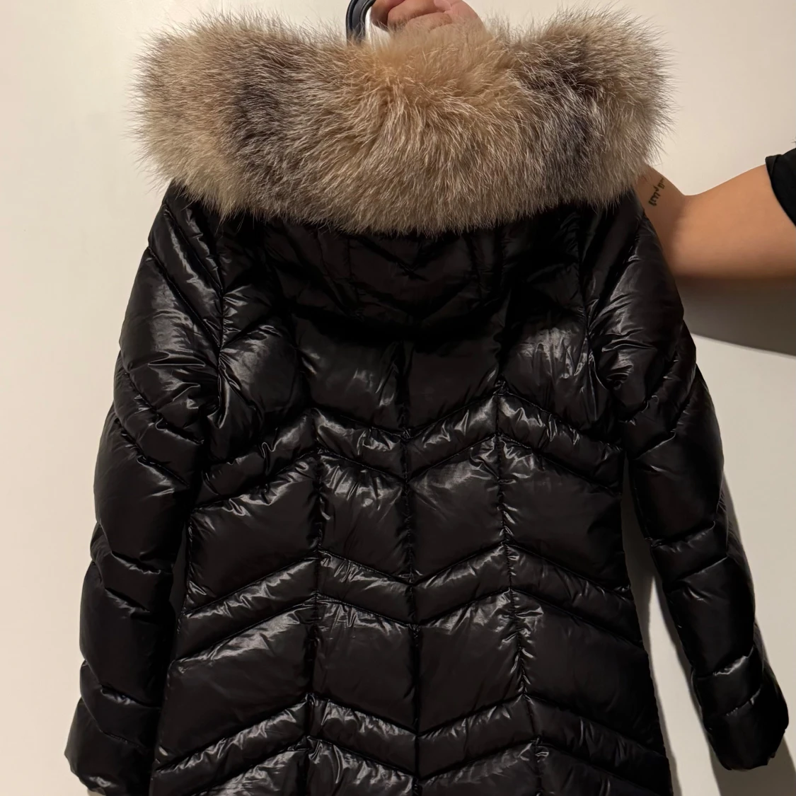 Snygg svart lång dunjacka med glansig finish och stor fluffig päls. Perfekt för kalla vinterdagar när du vill hålla stilen. Köpt på femenina för 3799kr. Använd ett fåtal gånger. Skriv gärna för fler bilder. (Pälsen är ljusare i verkligheten) Pris går absolut att diskutera💓