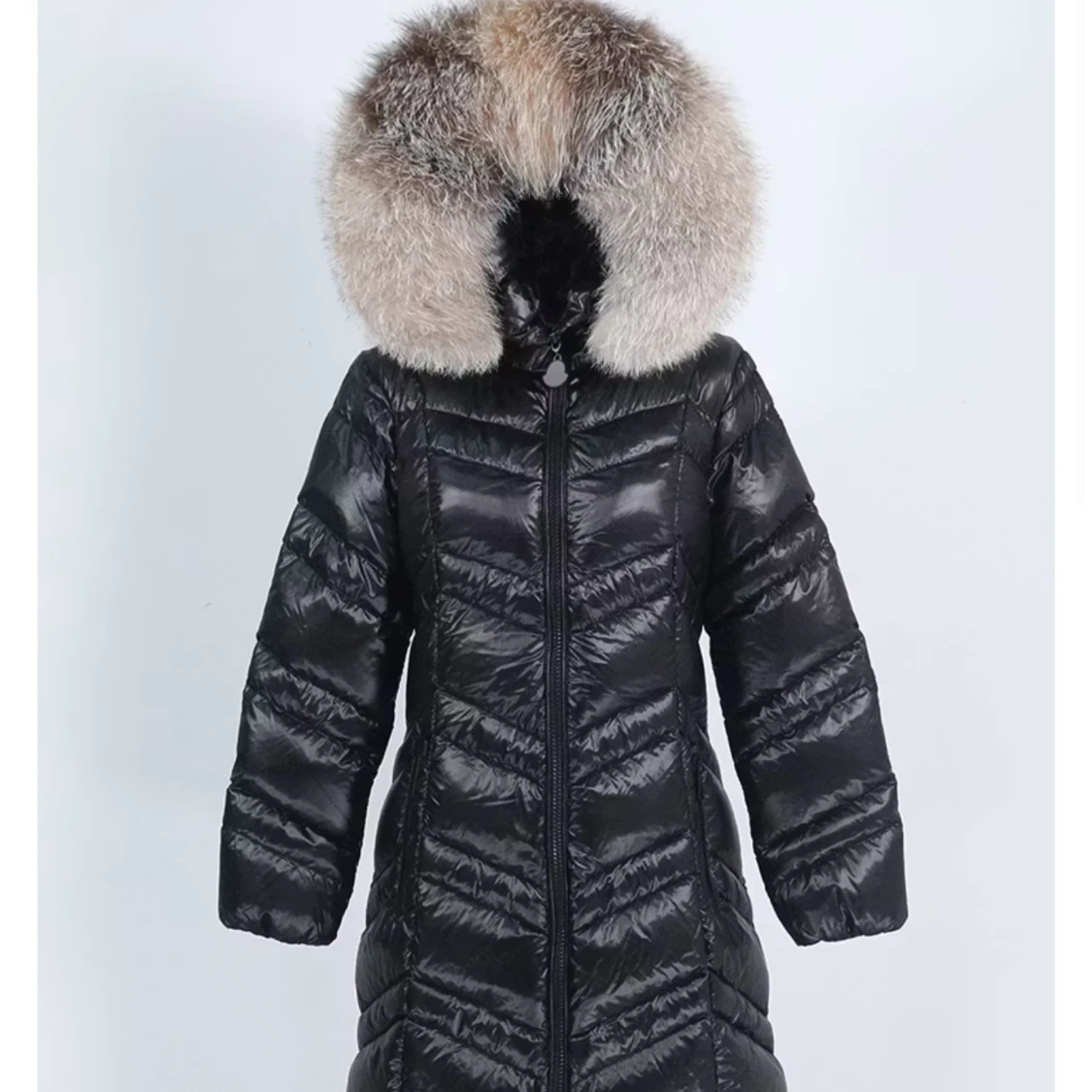 Svart lång dunjacka med pälsluva
