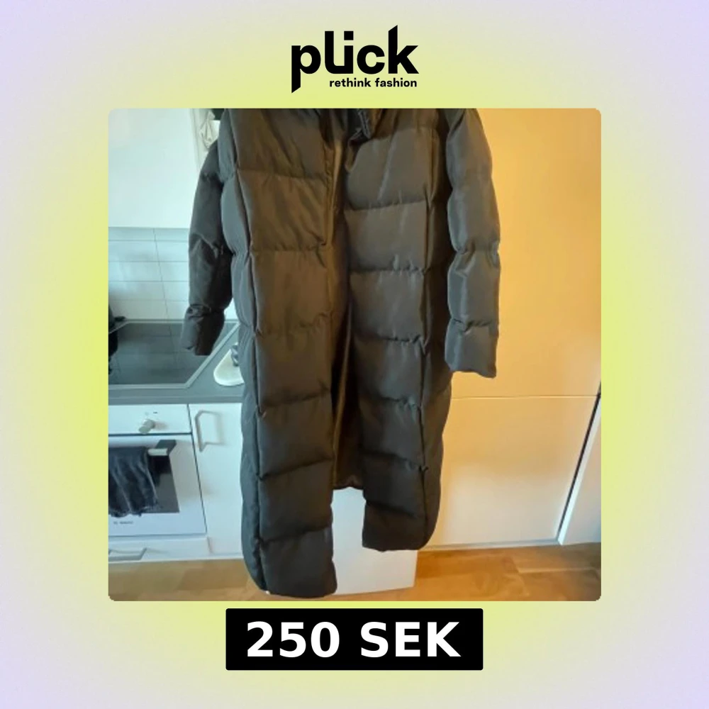 Säljer en svart lång dunjacka som är perfekt för kalla dagar. Jackan har en pufferdesign med långa ärmar och en hög krage för extra värme. Den är stilren och enkel att matcha med olika outfits.
