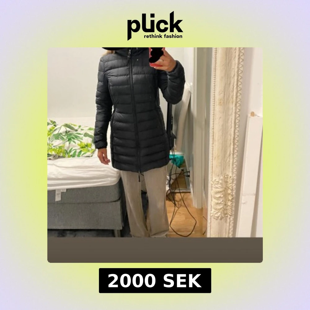 Säljer en svart lång dunjacka från Parajumpers med huva och dragkedja hela vägen. Jackan har quiltad design, smal passform och klassisk logga på ärmen. Perfekt för kalla dagar när du vill hålla stilen och värmen.