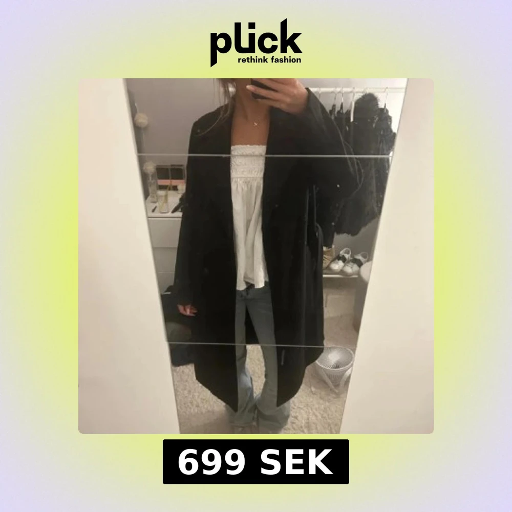 Säljer en svart, stilren och lång kappa med bälte i midjan. Jackan har en klassisk rak passform och är perfekt för dig som gillar en enkel men snygg look. Passar till jeans och har långa ärmar. Fråga gärna om fler bilder eller mått!