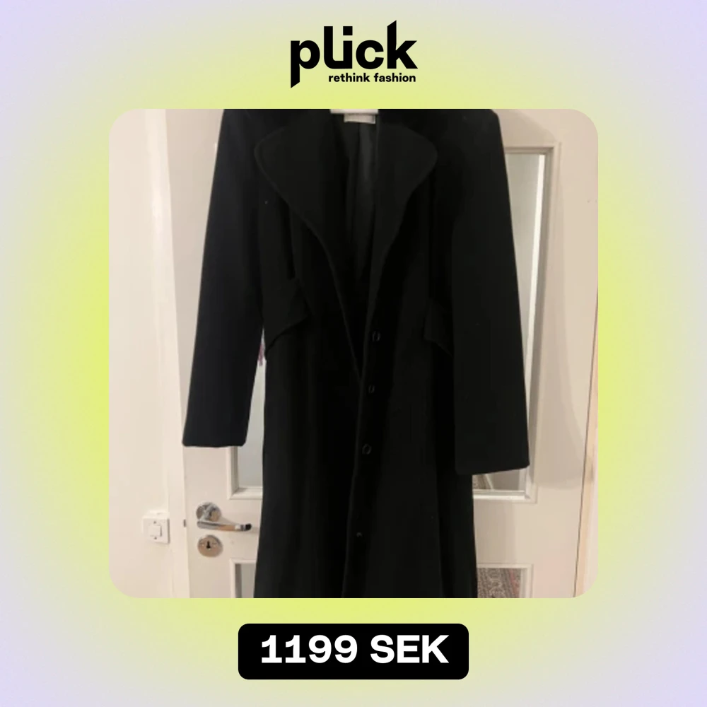En lång svart kappa i lyxigt och tungt material. Använd ett få antal gånger och passar perfekt till det kalla vädret. Köpter för 2500 men säljer för mindre än halva priset. Skriv om du vill ha fler bilder.