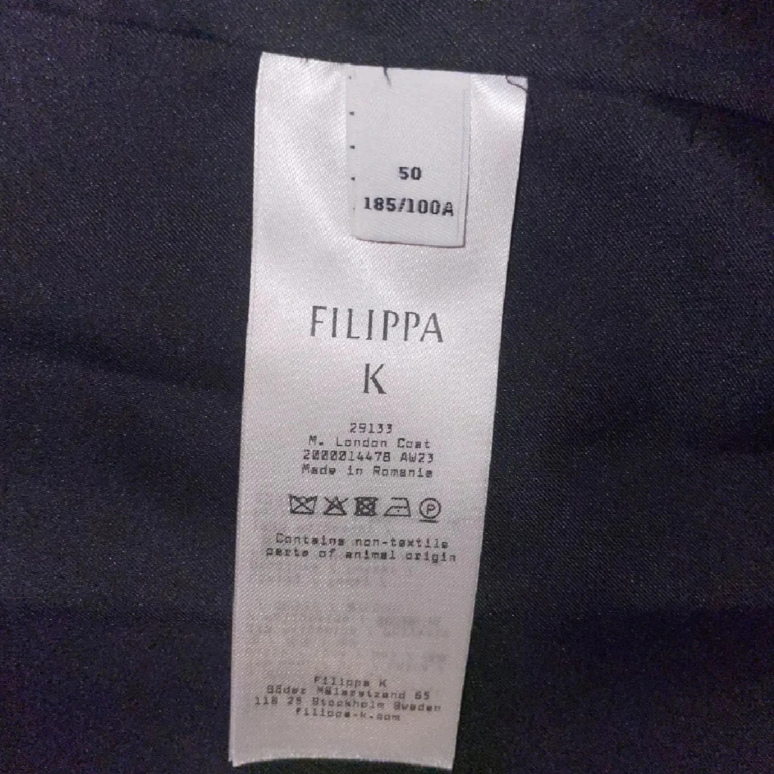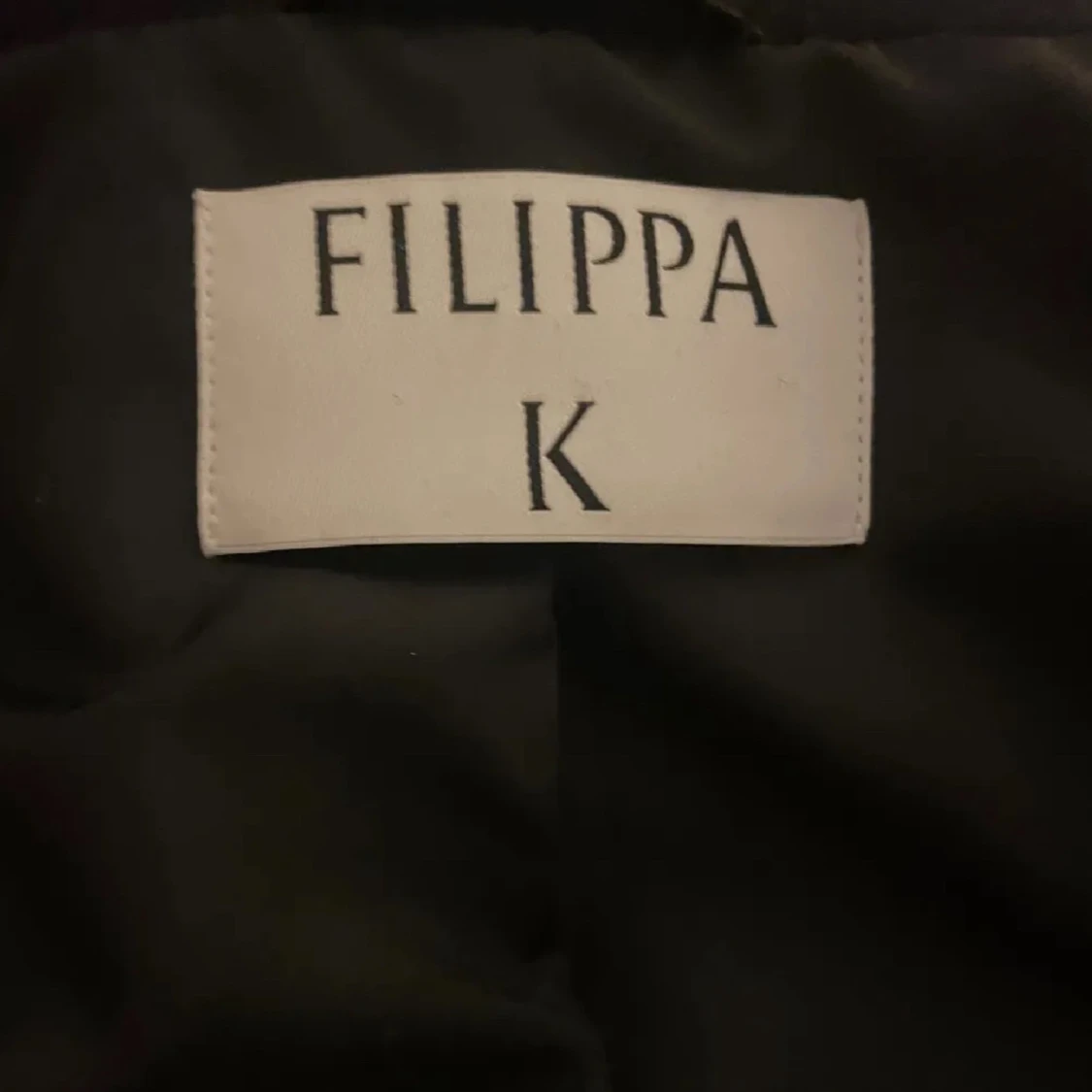 Stilren svart kappa från Filippa K i klassisk rak modell med knappar framtill och krage. Perfekt för dig som gillar minimalistisk och tidlös design. Kappan är tillverkad i ullblandning och har långa ärmar. Passar dig som vill ha en clean och snygg look.