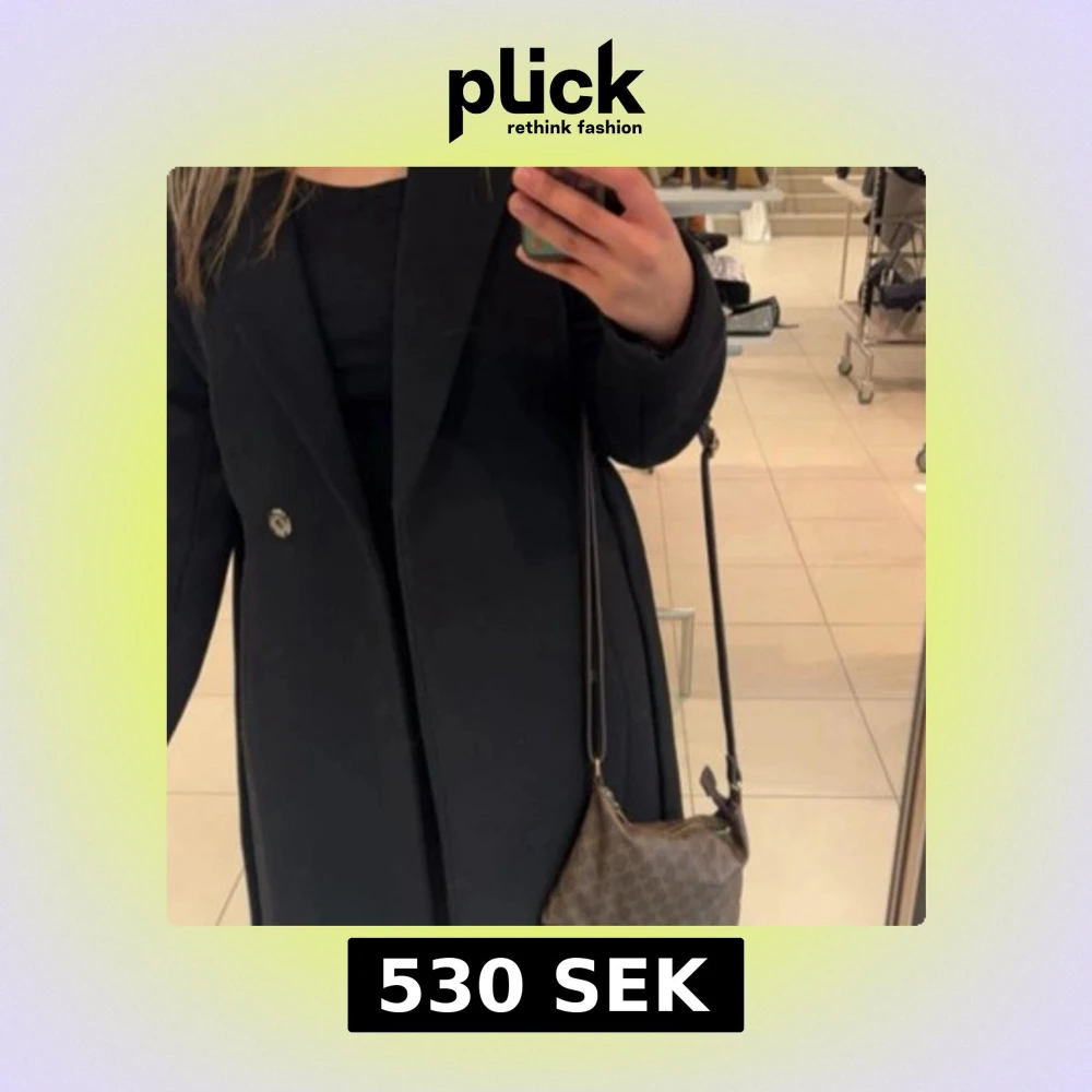 Säljer en svart, stilren och lång kappa med klassisk krage och knäppning framtill. Kappan har ett matchande bälte i midjan för snygg passform och är perfekt för kyligare dagar. Nypris 1100