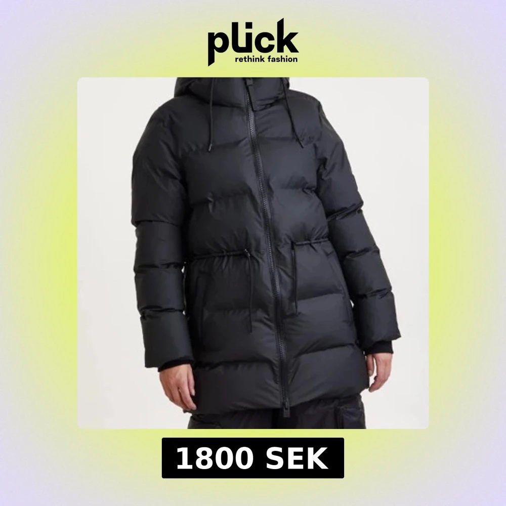 Svart lång pufferjacka från Rains