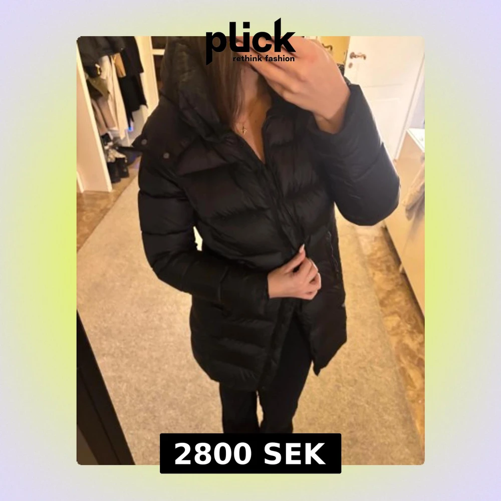 Säljer en svart lång pufferjacka med huva och dragkedja från BomBoogie. Jackan är vadderad och har en clean look med diskreta sömmar och en figurnära passform. Nypris: 4800kr, pris kan diskuteras!!!