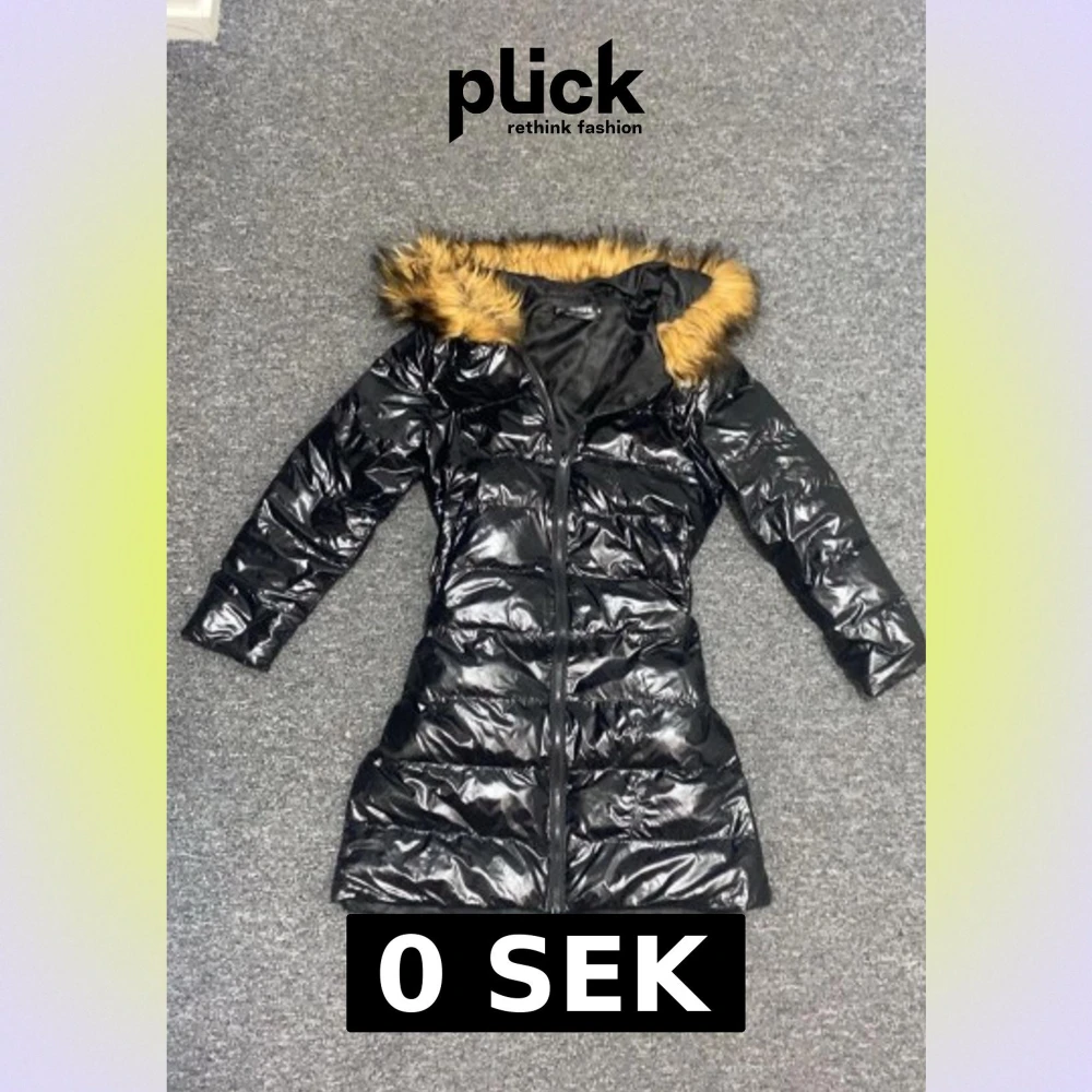 Snygg svart lång pufferjacka med glansig finish och huva med fluffig brun fuskpäls. Jackan har quiltad design, dragkedja framtill och långa ärmar. Perfekt för kalla dagar när du vill hålla dig varm och samtidigt se cool ut.