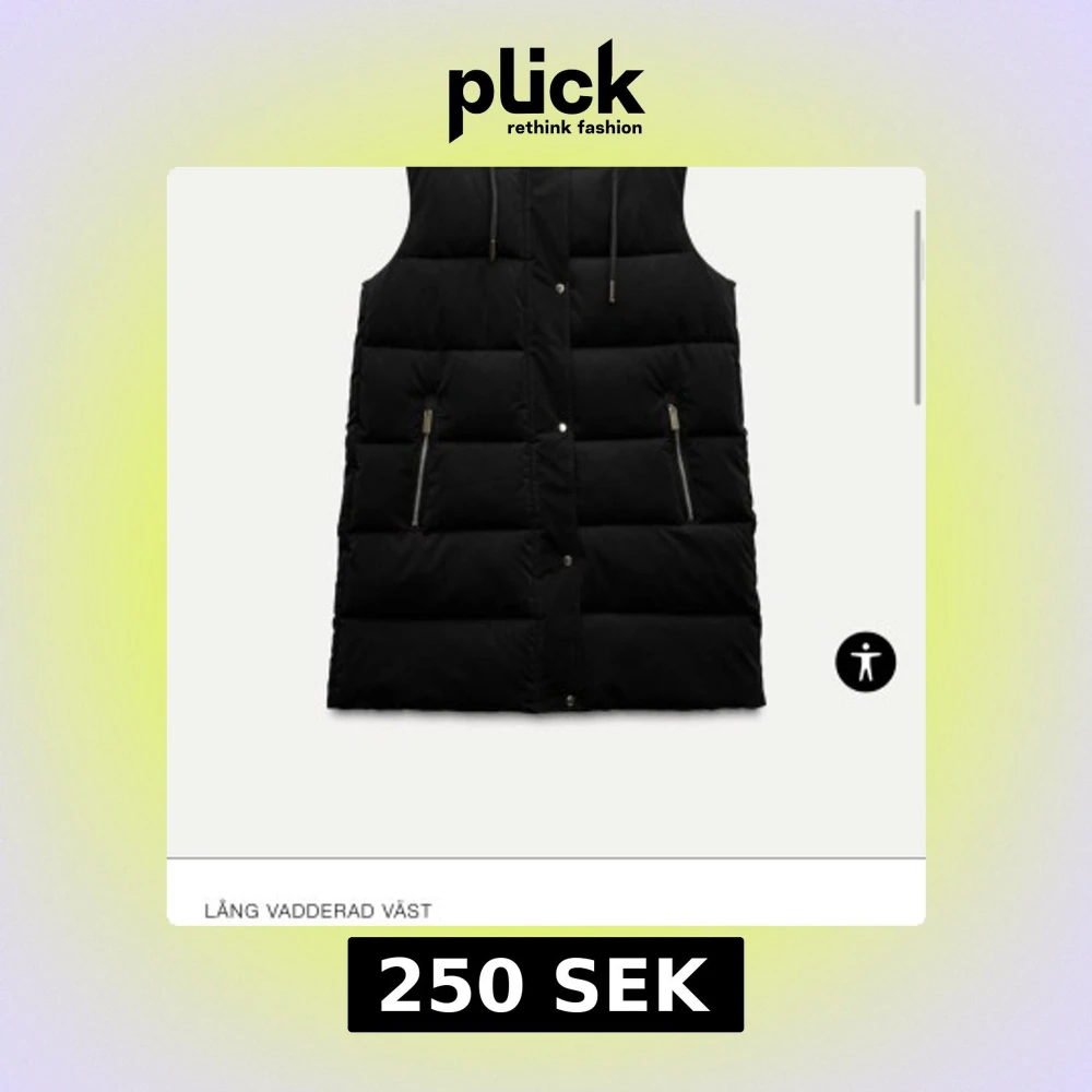 Säljer en svart lång vadderad väst från Zara med dragkedja och knappar. Västen har en huva och praktiska fickor med dragkedjor. Perfekt för kyliga dagar. Passar även S. Köpt för 699kr.