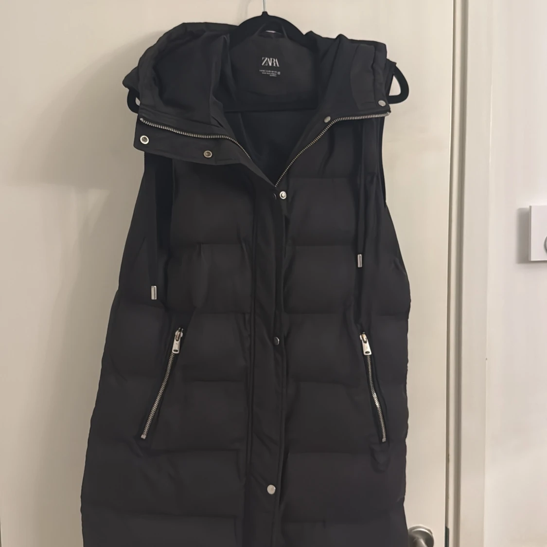 Svart lång vadderad väst från Zara