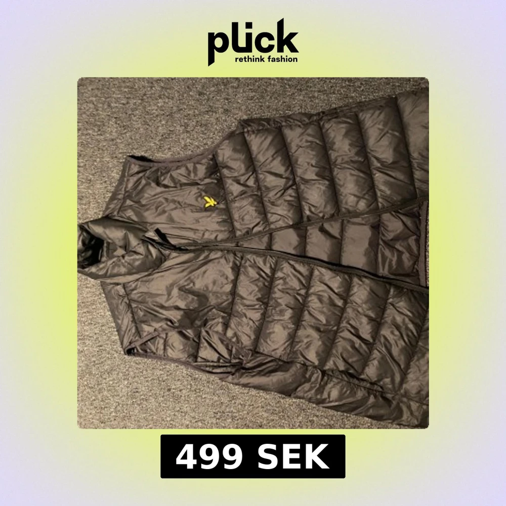 Snygg svart dunväst med dragkedja och ett litet gult broderat märke på bröstet. Perfekt för kyliga dagar när du vill hålla värmen utan att bära en jacka. Västen har en stilren design och passar bra till olika outfits.