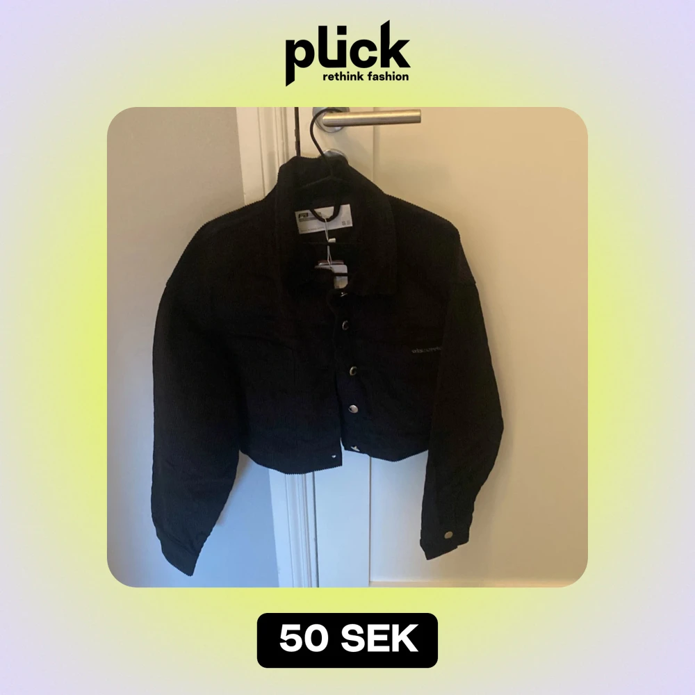 Säljer en snygg svart croppad jacka från Calvin Klein. Den har en cool design med knappar framtill och långa ärmar. Perfekt för en trendig look i höst eller vår. Passar bra till både vardag och fest!