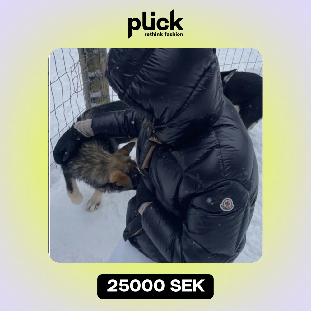 Obs: Tryck ej på köp nu förens ni pratat med mig! Intresskoll💗 snygg och varm svart/marinblå dunjacka från Moncler. Jackan har en glansig finish. Perfekt för vintern med sin pufferstil och långa ärmar. Jackan har en dragkedja och en stor mysig huva för extra skydd mot kylan. Köpt på Plick förra året men i bra skick, dock går höger dragkedjan ej att stänga. Kontakta för fler frågor!!
