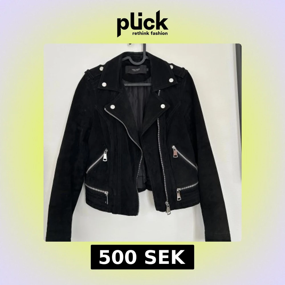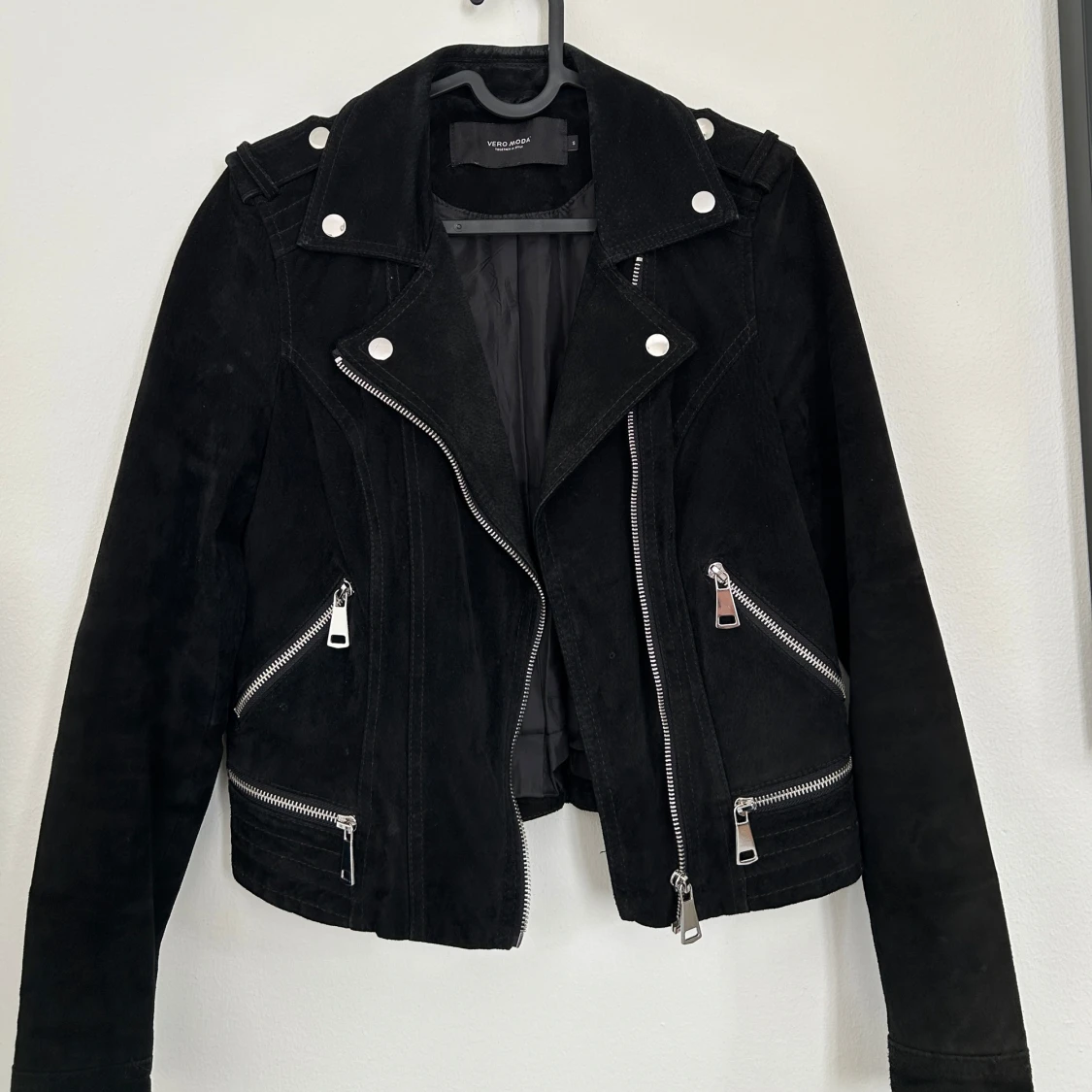 Snygg svart mockajacka från Vero Moda med coola silvriga dragkedjor och knappar. Jackan har bikerstil, lång ärm och flera fickor med dragkedja. Jackan är använd ett fåtal gånger och är i fint skick!