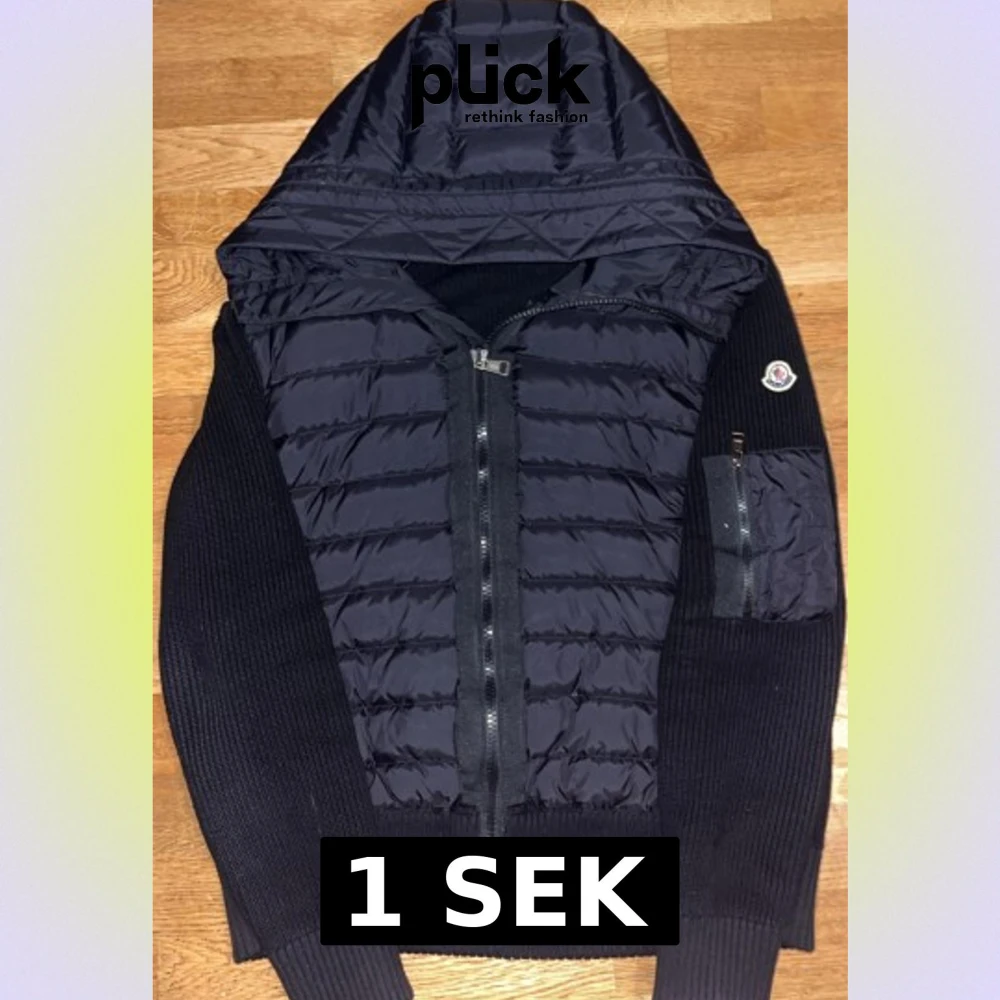 Svart Moncler cardigan dunjacka med huva