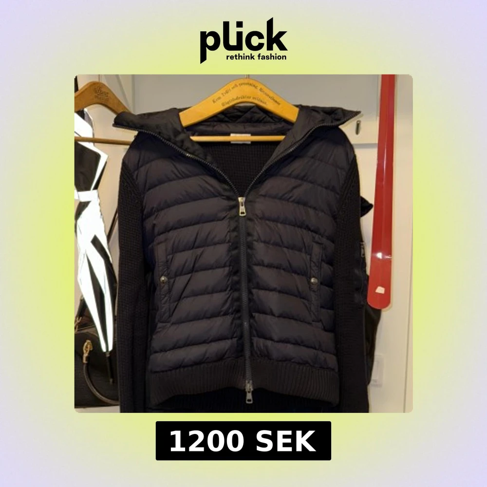 Snygg svart cardigan från Moncler med stickade ärmar och quiltad front. Jackan har dragkedja framtill, två fickor med tryckknappar och en huva. Perfekt för dig som vill ha en stilren och exklusiv look med sportig touch.