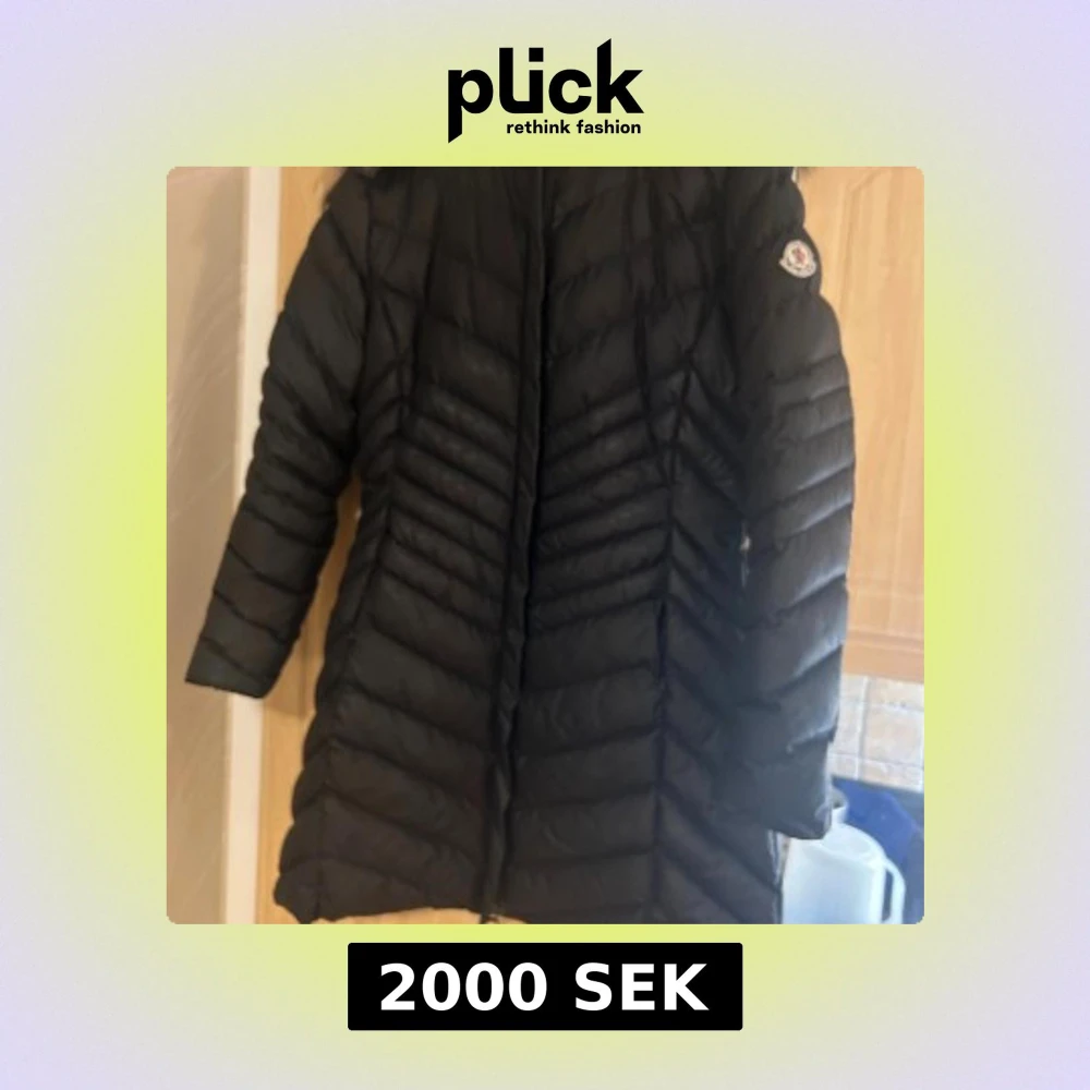 Säljer en svart lång dunjacka från Moncler ni som vet ni vet. med snyggt mönstrad vaddering och huva med fluffig päls. Jackan har dragkedja framtill och Moncler-logga på ärmen. Perfekt för kalla dagar och riktigt stilren look. Köpte den på vinted,har aldrig använt den då den va för liten för mig. Det står XXL men är nog mer än M L. Priset är inte hugget i sten och går och förhandla.
