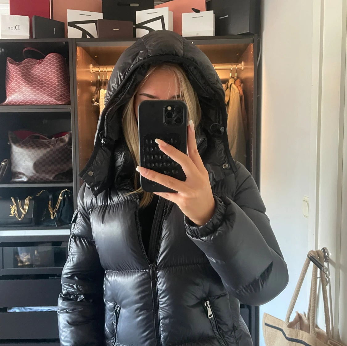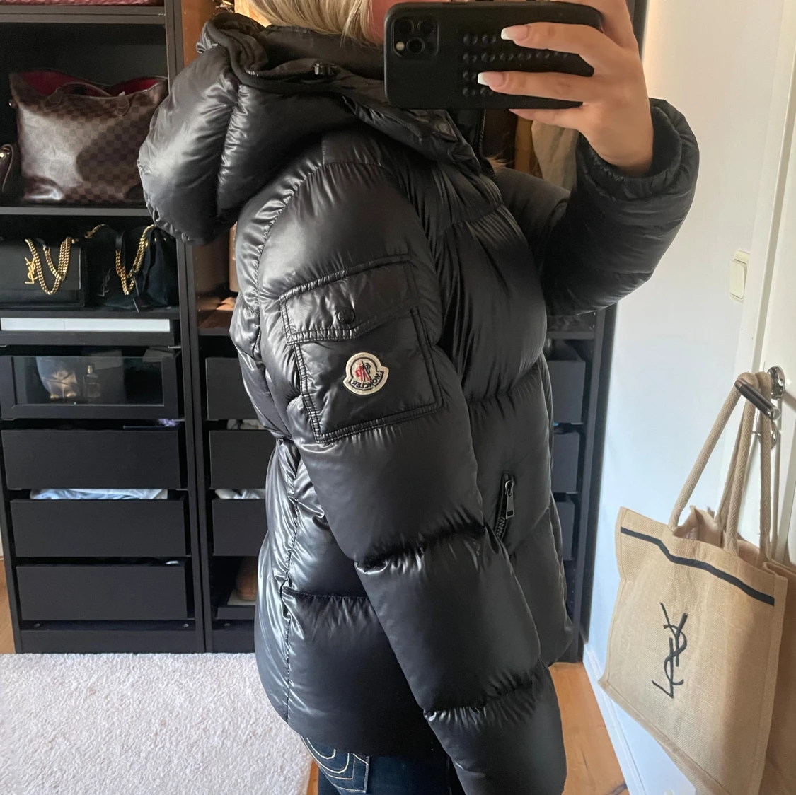 Säljer min svarta moncler jacka! Jättebra skick utan några som helst defekter! Osäker på om den är äkta eller inte så jag köpte den second hand💕💕 köpte för 5000kr