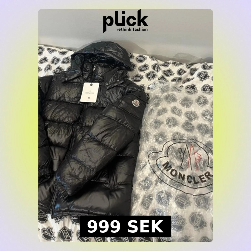 Svart pufferjacka från Moncler med huva och klassisk logga på ärmen. Jackan har quiltad design, dragkedja framtill och är tillverkad i blankt syntetmaterial med dunfyllning. Perfekt för kalla dagar och har coola detaljer som serietidningspatch på insidan.