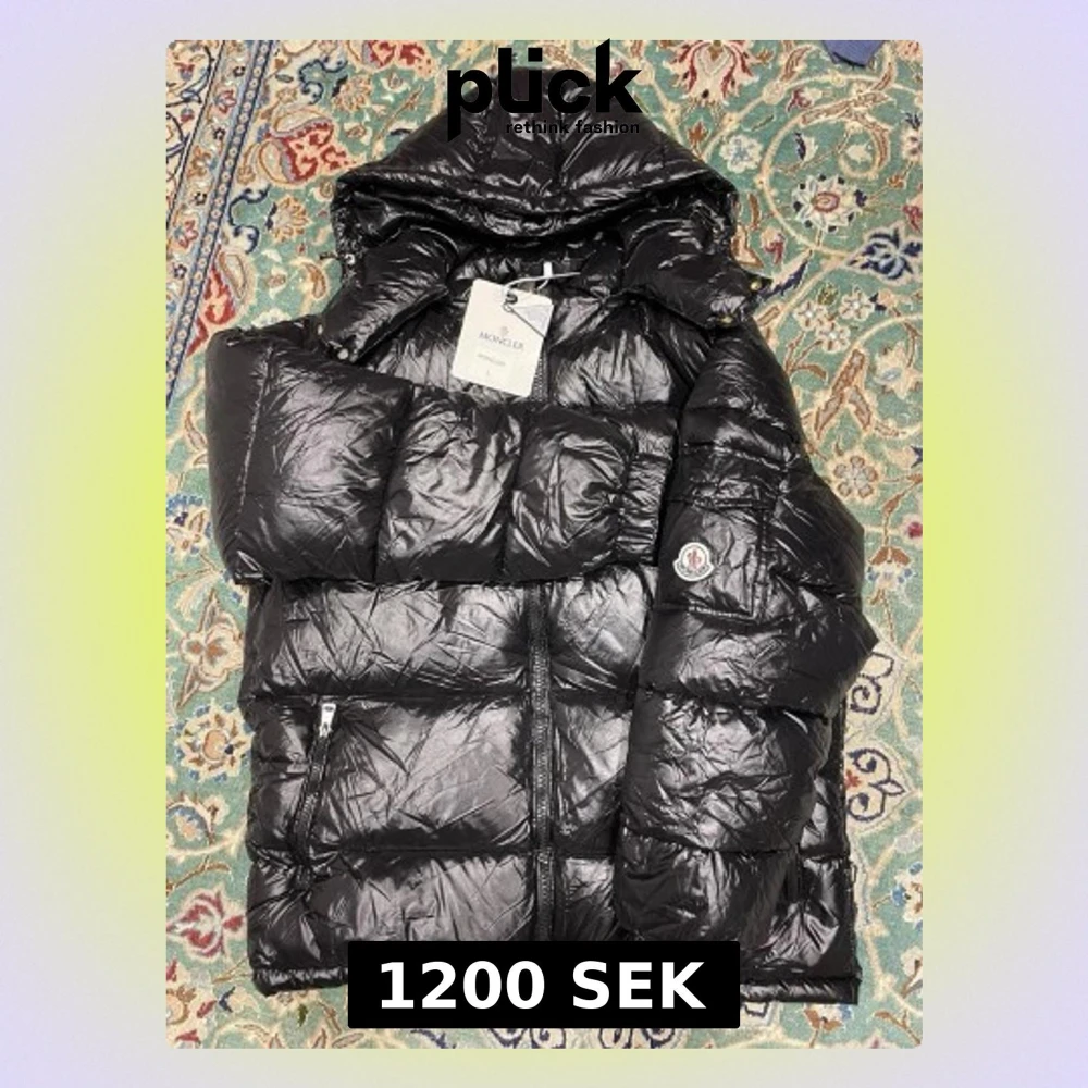 Säljer en svart pufferjacka från Moncler i storlek L. Jackan har glansig finish, huva, dragkedja framtill och Moncler-logga på ärmen. Flera fickor med dragkedja och knappdetaljer. Perfekt för kalla dagar när du vill ha både stil och värme.
