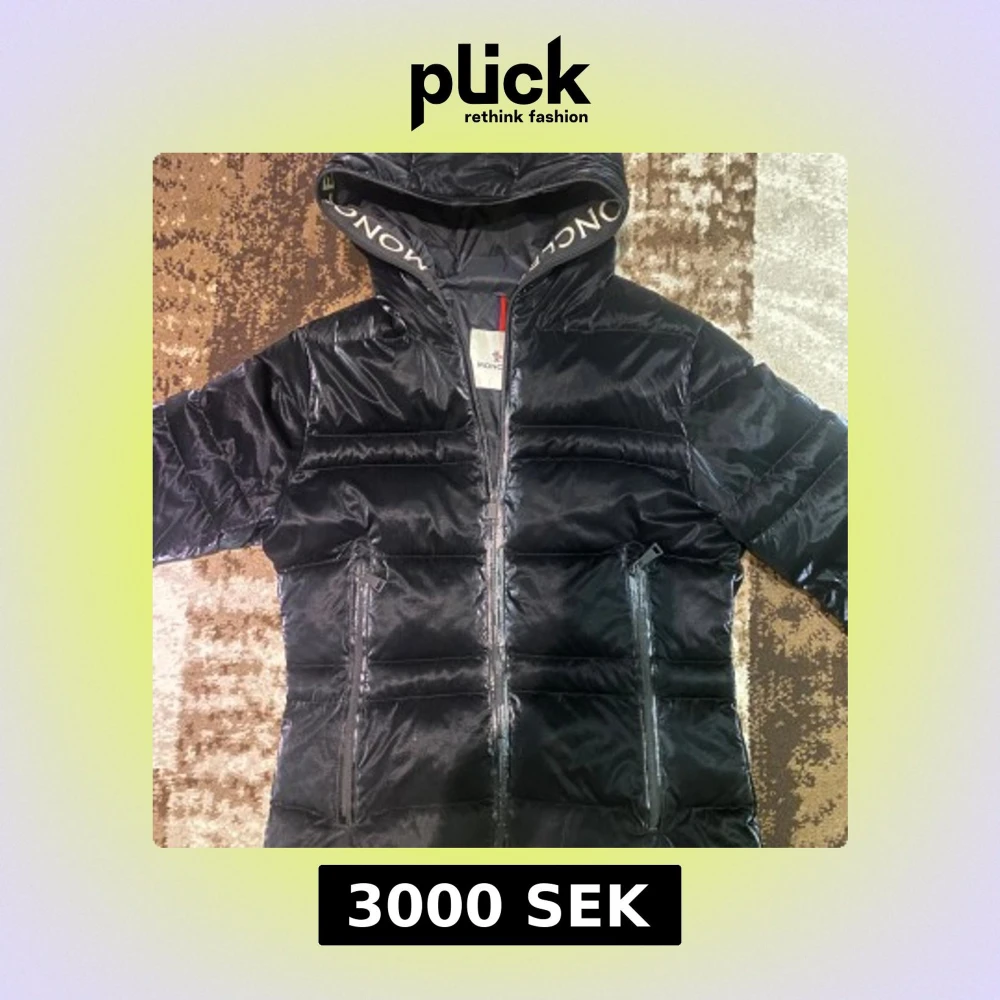 Svart pufferjacka från Moncler med stor huva och logotyp på insidan. Jackan har två dragkedjeförsedda fickor framtill. Insidan har en serietidningsetikett, perfekt för kalla dagar och riktigt snygg! Kom privat för fler bilder