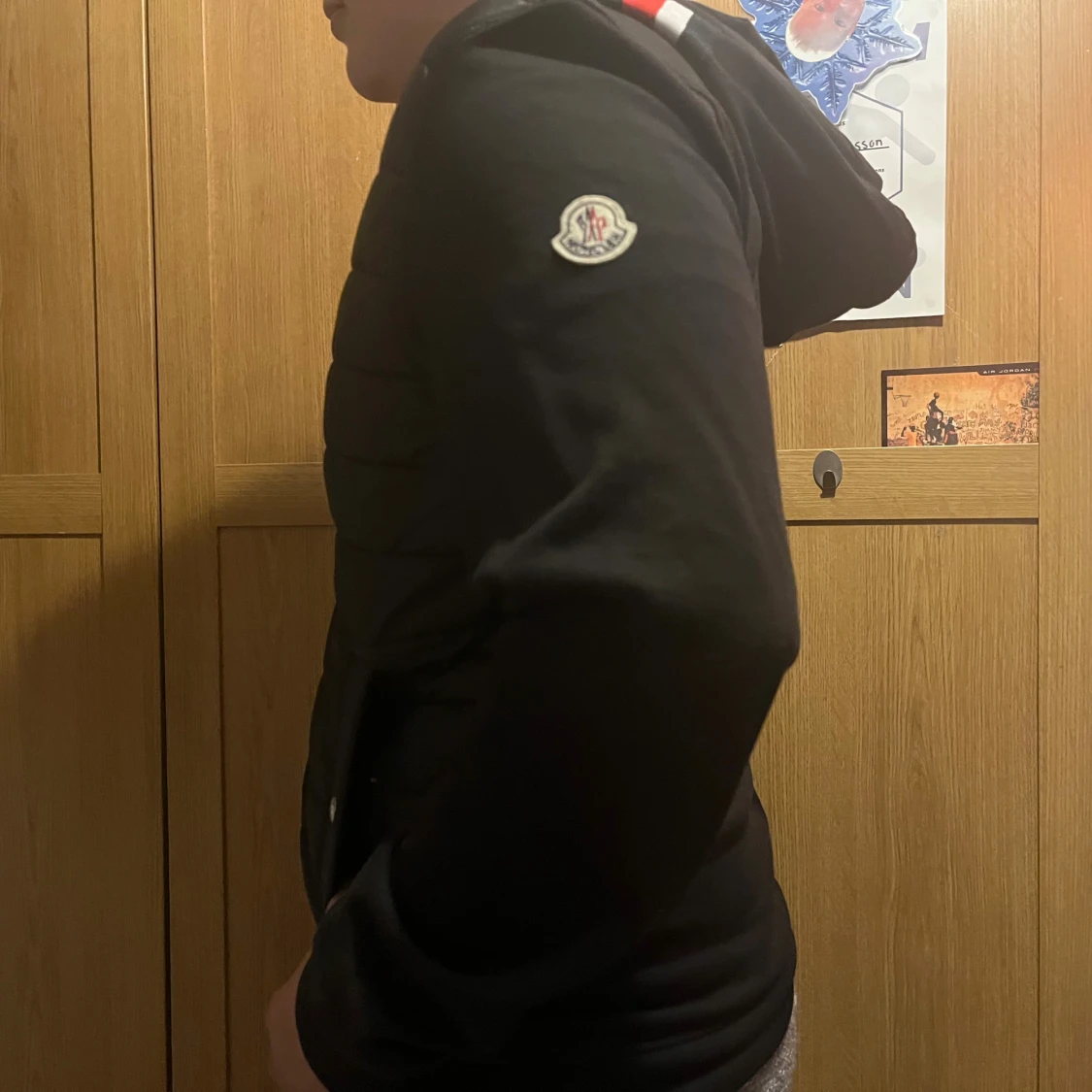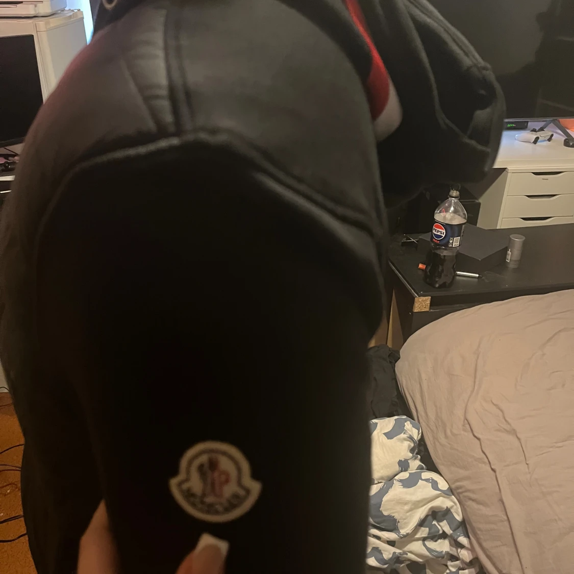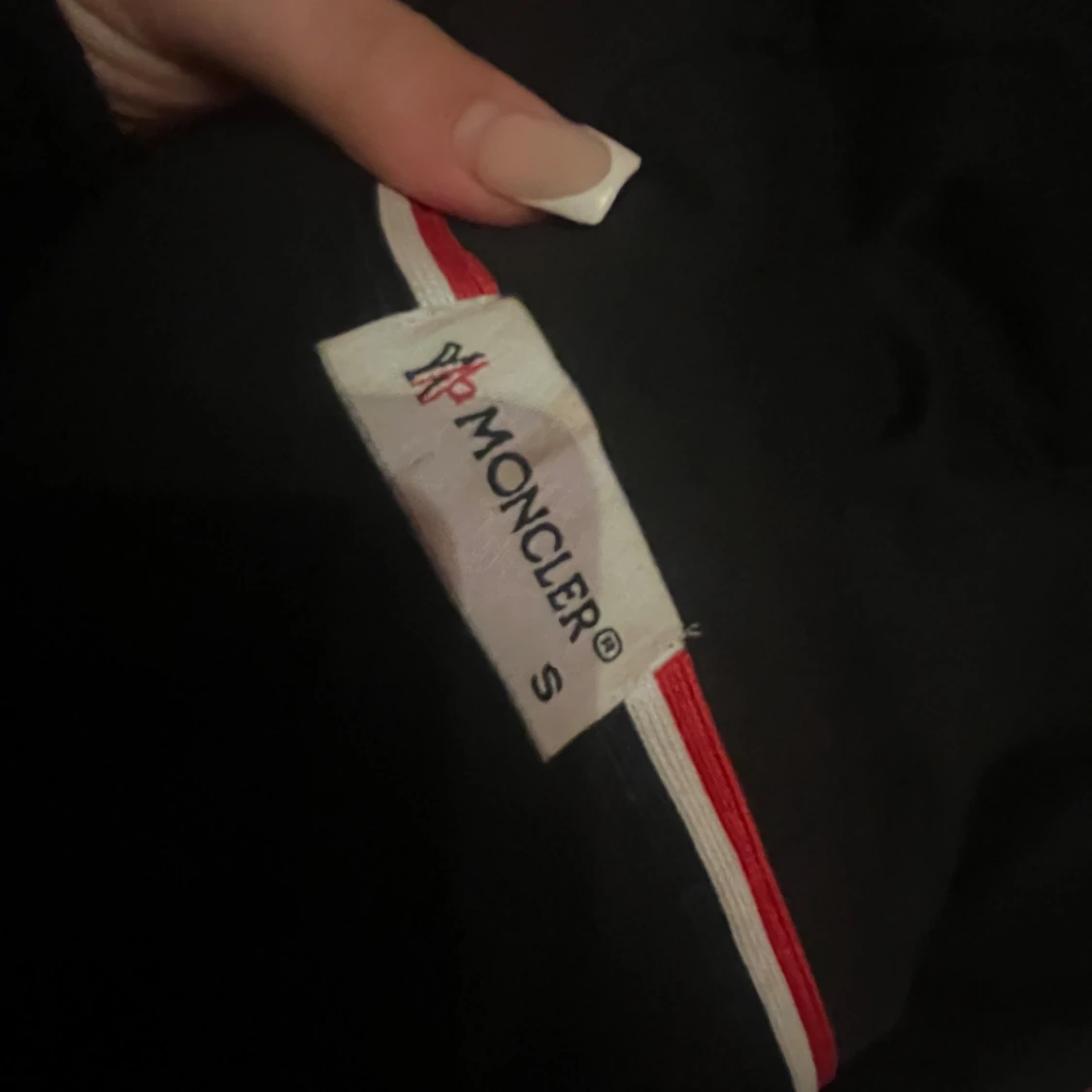 Säljer en svart äkta pufferjacka från Moncler i storlek S. Jackan har quiltad front, huva och Moncler-logga på ärmen. Dragkedja framtill och två fickor med knapp. Perfekt för dig som vill ha en stilren och sportig look.