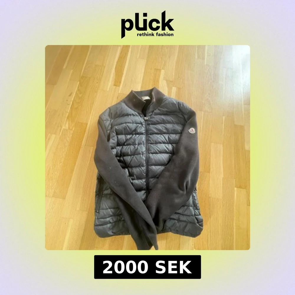 Snygg svart pufferjacka från Moncler med quiltad framsida och stickade ärmar. Jackan har dragkedja framtill, ståkrage och Moncler-logga på ärmen. Perfekt för dig som vill ha en stilren och sportig look med exklusiv känsla. Kan tyvärr inte garantera äktheten