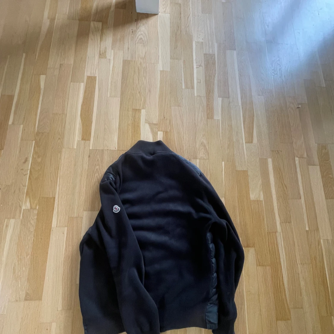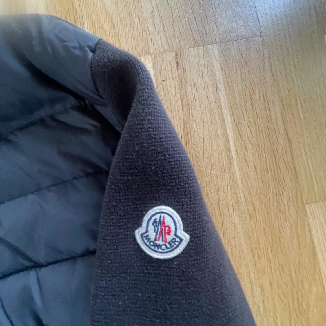 Svart Moncler pufferjacka med stickade ärmar