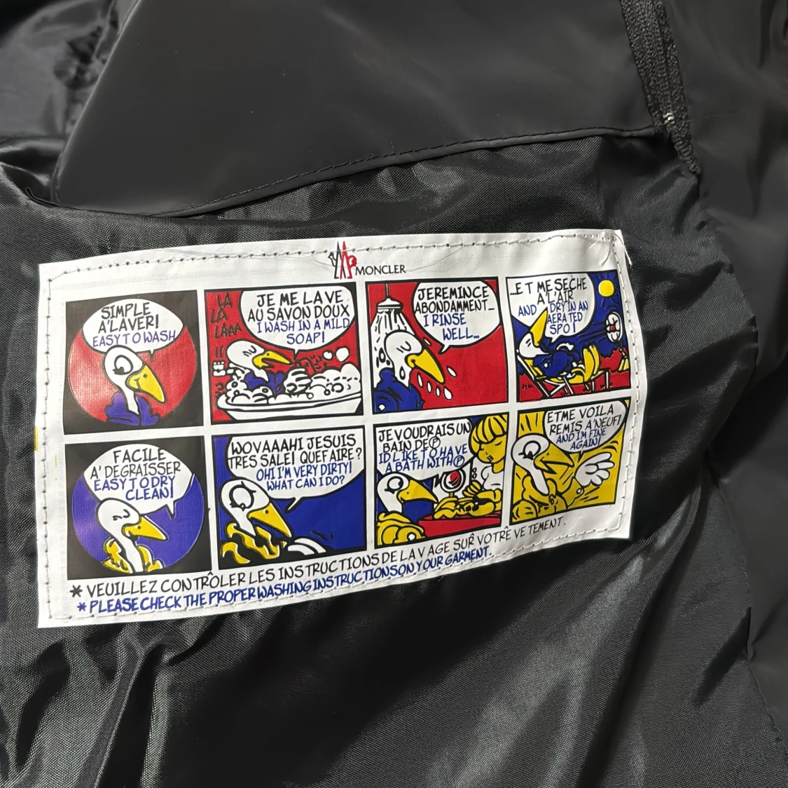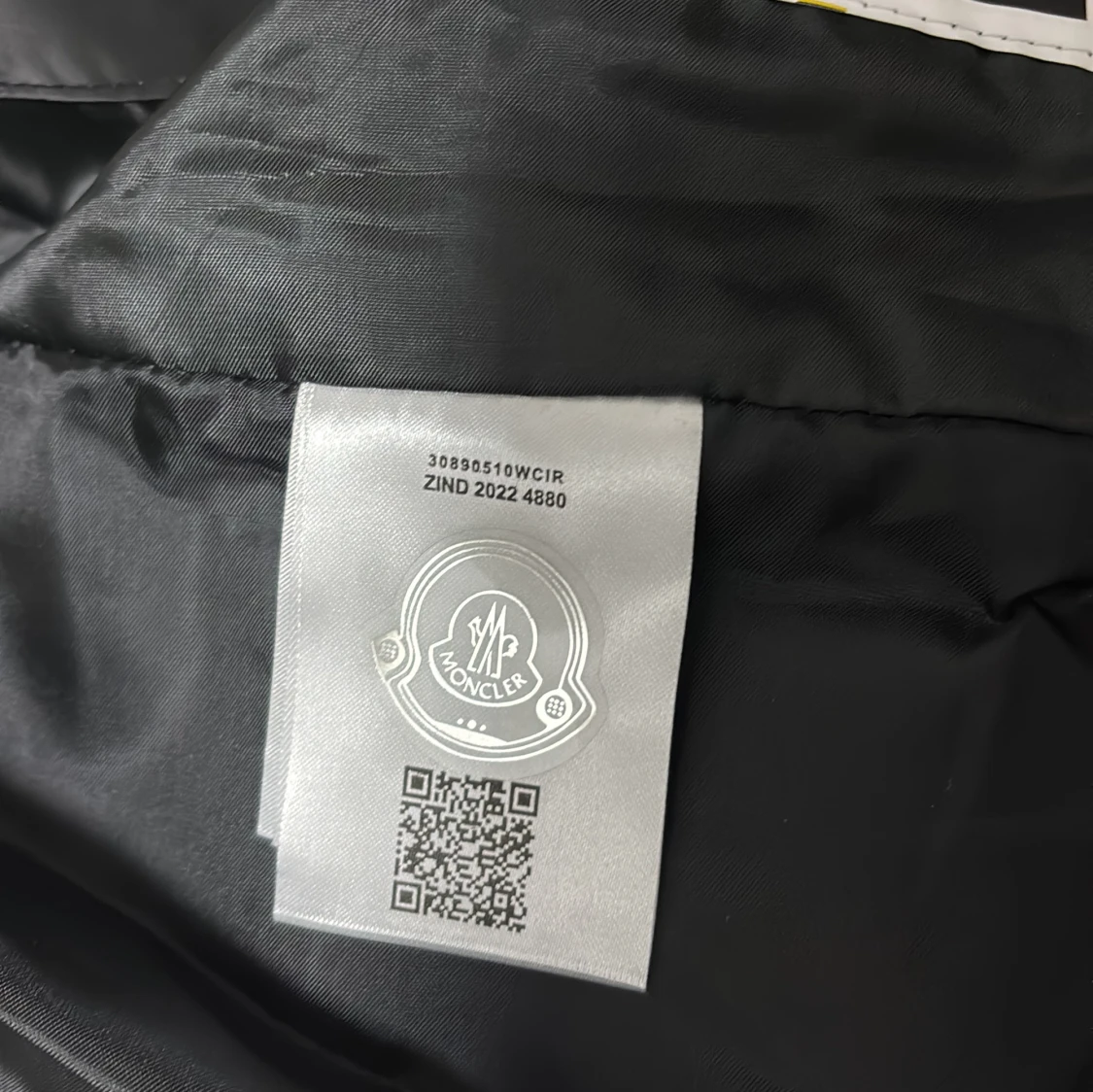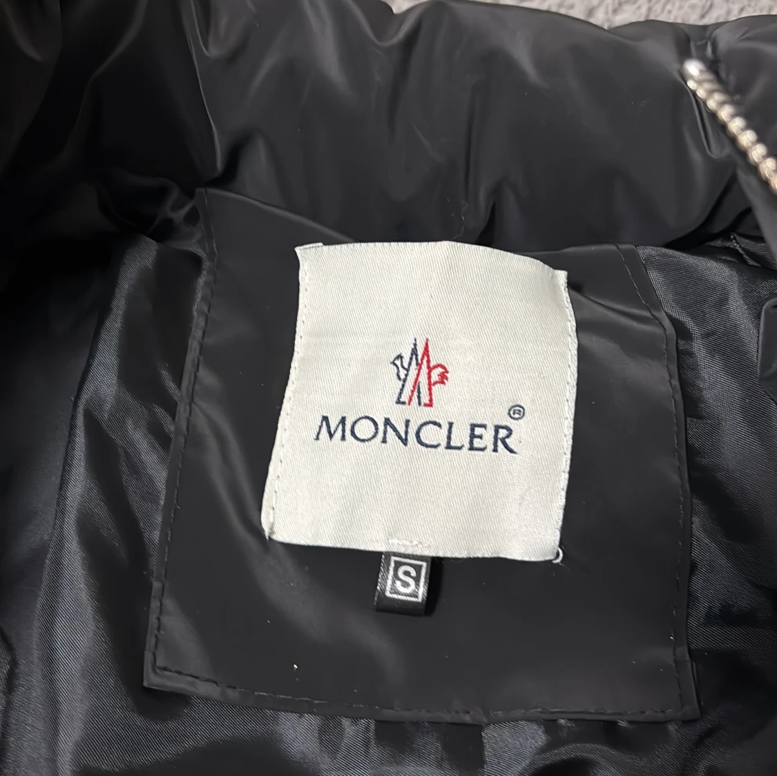 Svart pufferjacka från Moncler med stickade ärmar och quiltad kropp. Jackan har dragkedja framtill, två dragkedjefickor och Moncler-logga på ena ärmen. Materialmix av polyester och stickat ger en modern look. Perfekt för kyliga dagar.