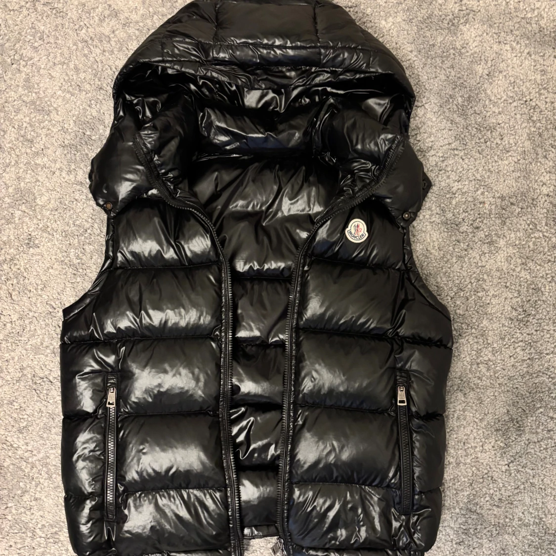 En väldigt fin svart moncler väst som är i väldigt bra skick. Den är inte sönder nånstans. NFC funkar på den och jag har kvitto.